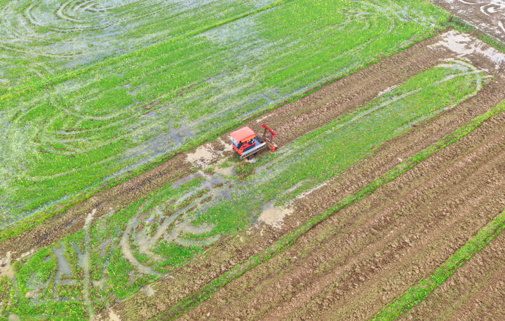 3月20日,春分时节,恰逢农历二月初二“龙抬头”。 “春分龙抬头,五谷大丰收。”当前,南方早稻开始育秧,北方冬小麦全面返青,广袤田野上生机盎然。 “抓好春耕备耕,对于确保粮食丰产和粮食安全至关重要。”习近平总书记强调。“十五五”规划纲要提出粮食综合生产能力达到1.45万亿斤左右的目标任务,对农业生产提出更高要求。 春和景明,万象“耕”新。全国两会胜利闭幕后,新华社记者深入多地调研,在各地各部门抢抓农时备春耕的生动实践中,感受着齐心协力打好春季农业生产“第一仗”的信心和力量。 抢农时,播撒丰收希望 在安徽,一场春雨过后,宿州市埇桥区淮河种植植保专业合作社理事长李清武来到麦田,察看冬小麦长势。“绿油油,壮得很!”李清武笑道。 去年秋天,当地遭遇连阴雨,冬小麦晚播超半个月。春节前后,小麦开始返青。李清武第一时间追施了返青肥,前不久他再次喷施了除草剂和叶面肥。 “当时很担心,但是农技人员一直鼓励说只要做好田间管理,就不会有大问题。目前看小麦苗情不比去年同期差。”李清武对记者说。 春耕春管直接关系到夏粮、秋粮的收成。跑好春耕“第一棒”,对于完成全年粮食生产目标至关重要。 3月,各地抢抓农时,想方设法高质量高标准做好田间管理、完成春播任务。 2026年3月20日,在湖南省衡阳市祁东县金桥镇,村民驾驶农机翻耕稻田(无人机照片)。新华社发(曹正平摄) 眼下,正是早稻育秧关键期。记者在湖南省常德市桃源县沙坪镇看到,种粮大户何新平的近20亩集中育秧田里,嫩绿的秧苗在细雨中摇曳。不远处,400多亩水田翻耕一新,泥土的气息扑面而来。 为了不误农时,何新平赶在3月中旬的连续阴雨天气前完成了集中育秧。“预计再有20天就可以开始移栽,正好赶上最适合秧苗生长的气候。”何新平说。 在东北,黑龙江省大庆市林甸县鹤鸣湖镇胜利村种粮大户袁洪广这几天正忙着检修农机,仓库内堆放着为春耕生产采购的化肥等农资。“今年准备种植9000多亩玉米。”他告诉记者。 在西南,一年一度的春耕开犁仪式3月16日在西藏农区举行。随着拖拉机的前行,紧随其后的姑娘们从腰间的筐里抓出一把种子,熟练地撒进田垄。 ………… 2026年3月16日,西藏山南市结巴乡结巴村村民身着盛装,在新犁开的田地上播撒种子。新华社记者 晋美多吉 摄 农业农村部最新农情调度显示,目前我国冬小麦播种面积保持稳定,一二类苗占比过八成,比冬前提高30多个百分点。此外,全国早稻育秧已完成三成半、同比略快,其中海南育秧过七成,广东、广西过六成,福建近五成,湖南过两成,江西一成半。 不负农时不负春。春天是万物生长的黄金时期,记者调研看到,各地积极践行大食物观,让春季农业生产的内涵变得更加丰富。 2026年3月20日,海南省琼海市嘉积镇农民在田园里耕作。新华社发(蒙钟德摄) 眼下是广东的“海洋春耕季”。这几天,南澳县裕海海产有限公司的养殖人员正忙着收获去年8月投放的绿鳍马面鲀,再培育新鱼苗。 春天也是果蔬种植的黄金季。在关中平原,果农们有的手握剪刀,有的臂挽竹篓,有的身背麻袋,穿行于苹果园中忙着修剪果树;在云南,各蔬菜产区的菜农抢抓时令整地理墒,为春夏蔬菜稳产保供打下基础…… 从南到北,自东向西,春耕生产的动人画卷正徐徐铺展,辛勤的农民在广袤沃野播撒丰收的希望。 强科技,激活增产新动能 “拓展无人机、物联网、机器人等应用场景”——“十五五”开局之年,无人机、机器人等关键词首次写入中央一号文件,释放出加快培育农业新质生产力的鲜明信号。 向科技要产能!在基层一线,记者感受到,农业科技正源源不断地为春耕生产注入新动能。 2026年3月20日,在河南省焦作市温县黄河滩区,无人机手操作无人机进行小麦春管作业。新华社发(黄福兴摄) 走进浙江省余姚市区域性水稻育秧中心,两条自动化育秧流水线正开足马力高效运转。 空苗盘在流水线上有序“排队”,加土仓精准铺土,播种仓按设定量播种,随后盖土、浇水一气呵成;在流水线末端,两条智能协同的四轴机械臂灵活转动,每15秒就能抓取10个苗盘,稳稳码放到指定区域…… “这套设备的核心就是自动化与智能化,彻底打破了传统育秧的效率瓶颈。”中心负责人余军林算了一笔细账:单条流水线日均播种量达1.2万盘,育秧效率较传统方式提升约三成。 在河北省保定市,望都县高优农业技术服务专业合作社服务的千亩高标准农田里,多架植保无人机在飞手精准操控下,依托北斗导航定位系统,高效开展农药喷施、肥料撒施等田间管理工作。 新装备、新技术的应用提高了春耕效率,良种良法配套、农机农艺融合,也在更大范围内发挥作用,为春耕生产保驾护航。 3月初,来自辽宁省彰武县的高级农艺师李晨忙着走村入户,围绕玉米单产提升提前对村民们开展技术指导。 由于地处科尔沁沙地南缘,彰武县多沙土,玉米产量一度较低。近年来,当地以玉米单产提升为突破口,加快选育推广高产品种,集成应用浅埋滴灌、水肥一体化、病虫草害综合防治等关键技术,以技术创新提升粮食产能。 2025年,彰武县玉米单产提升项目落实面积达8.1万亩,平均亩产超过1800斤,较普通种植地块增产约700斤,示范带动效应明显。 2026年3月17日,工人在位于黑龙江省绥化市的哈尔滨铁路物流中心绥化营业部农资装卸作业现场卸化肥。新华