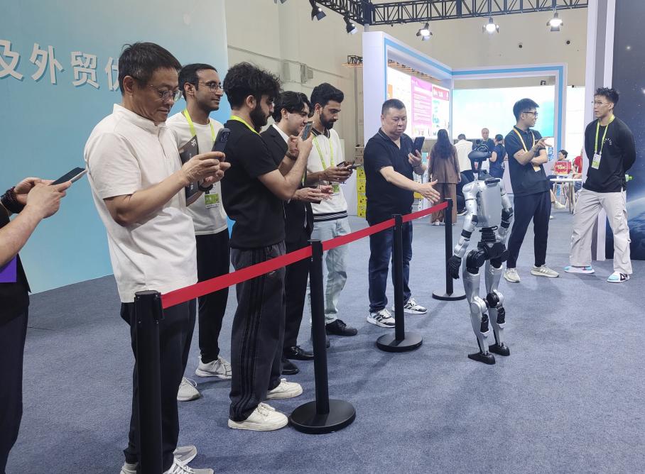 “外贸优品中华行”主题展上,灵动的人形机器人与观众近距离互动,吸引了人们驻足拍摄。“这比视频里看到的更灵活,科技感拉满!”北京观众王先生的感叹,折射出技术与消费融合的惊喜。