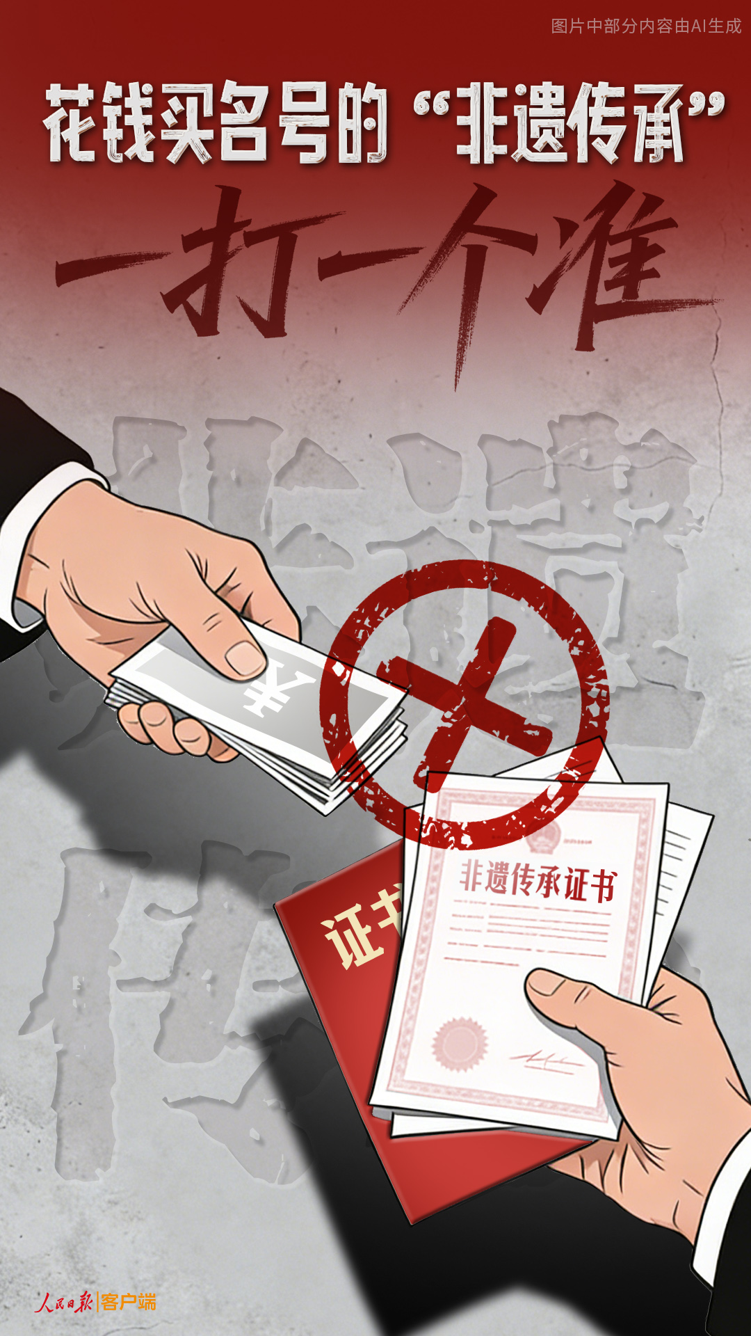 花钱买名号的“非遗传承”,一打一个准。目前,被曝光的涉事平台相关网站已关停,并停止经营活动。但遏制“非遗”造假乱象,不能仅靠事后补救,更需筑牢事前防范的监管防线。一方面,有关部门应加强非遗认定标准、官方标识体系等的宣传普及,打破信息差,让不法分子无机可乘;另一方面,要加强常态化监管,聚焦“非遗”标签滥用问题,整治违规商家,斩断利益链条。相关网络平台也要切实履行主体责任,加强信息审核,及时甄别并下架虚假“代办”信息,从传播环节阻断乱象蔓延。多部门、多环节协同发力、精准施策,让虚假认证无处遁形,为非遗传承保驾护航。