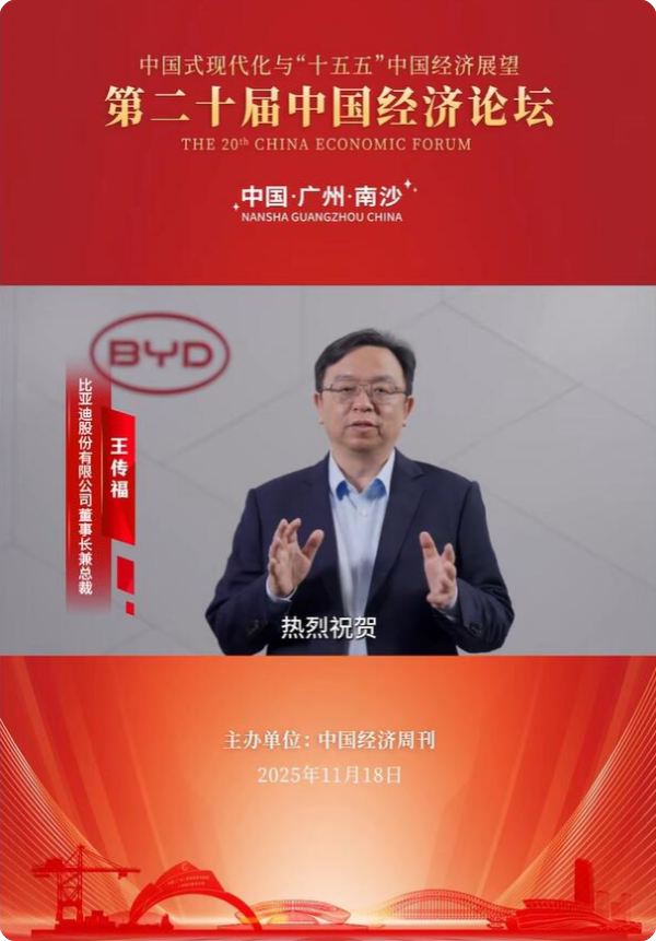 比亚迪董事长王传福预祝第二十届中国经济论坛圆满举办