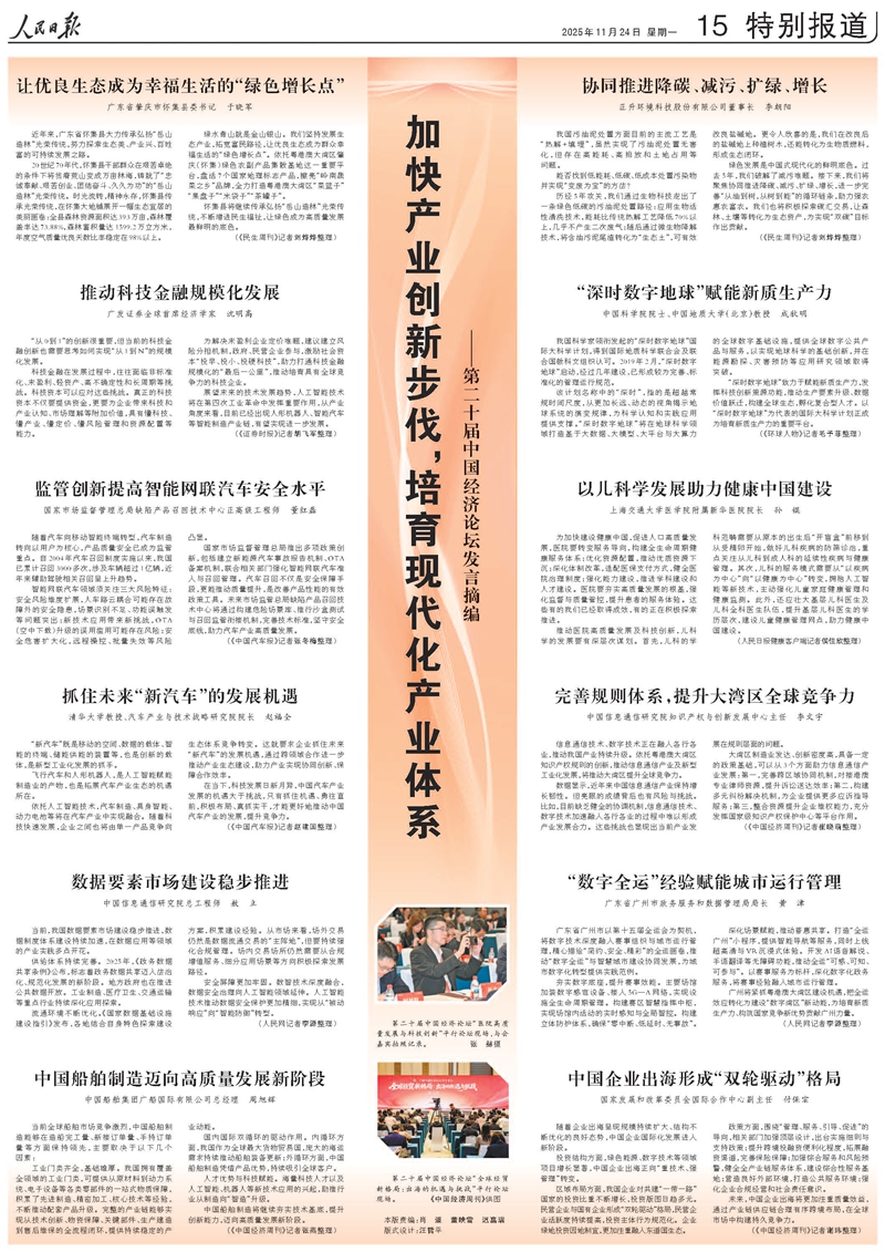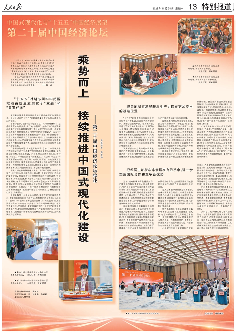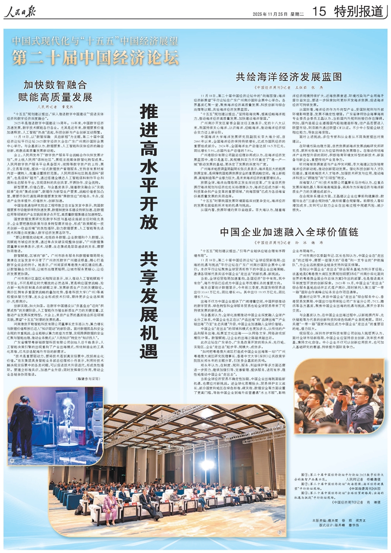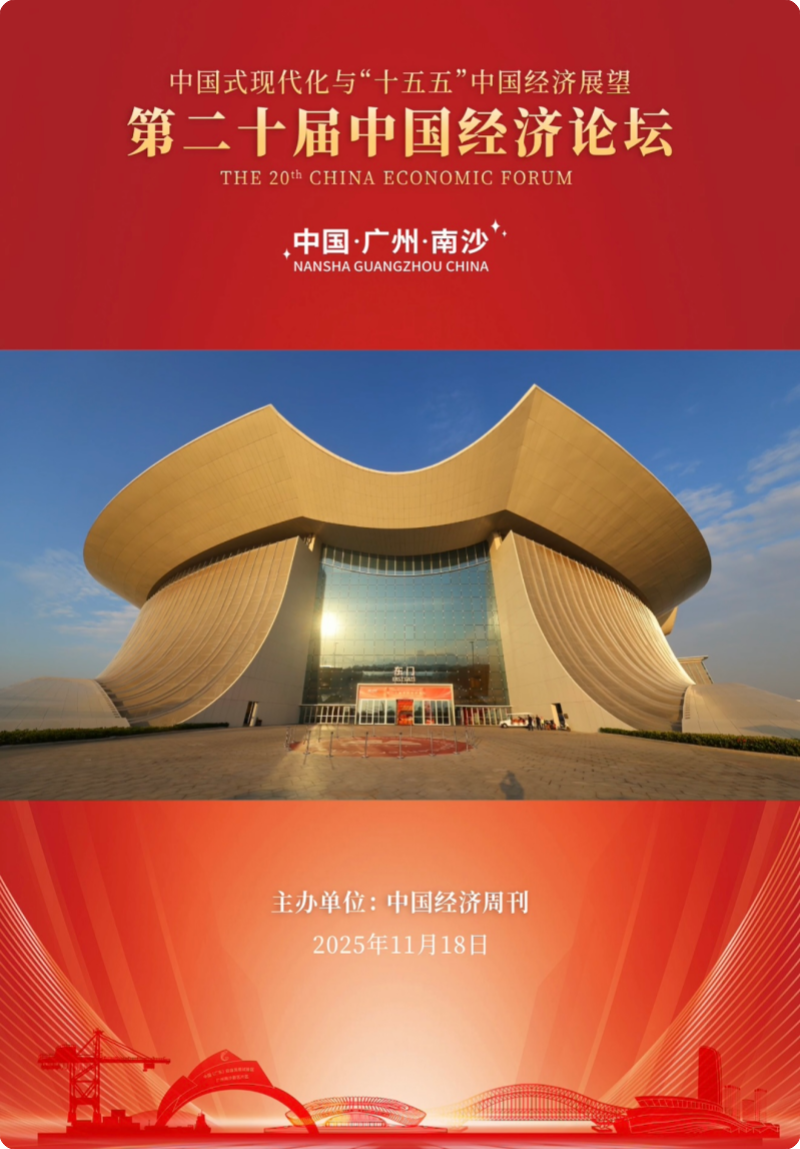 第二十届中国经济论坛11月18日在广东省广州市南沙经济技术开发区举行。本届论坛的主题为“中国式现代化与‘十五五’中国经济展望”。