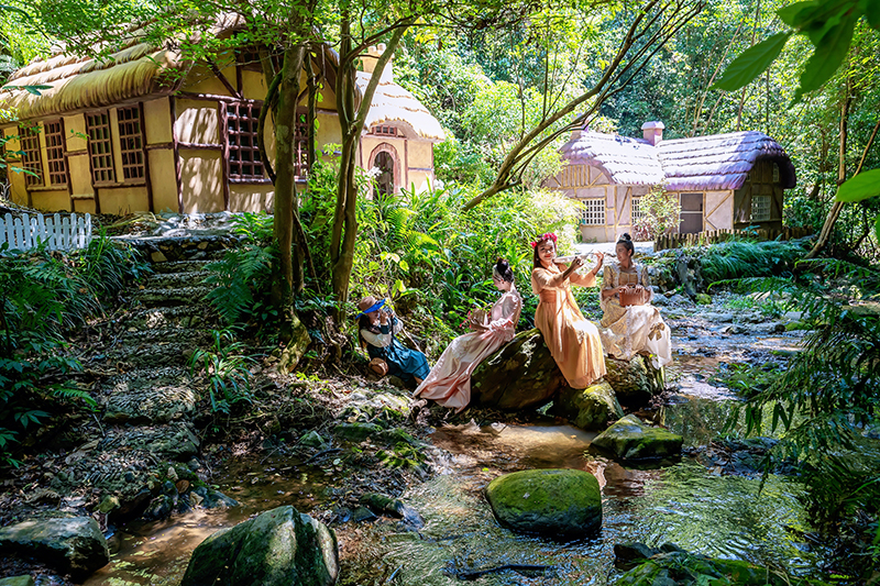 沿着社区主干道前行数百米,便可抵达双龙沟景区及梦呜苗寨民俗文化体验园。景区内原始森林郁郁葱葱,溪水潺潺,空气清新,各类游乐项目点缀其间;梦呜苗寨则以原生态苗族风情为特色,通过非遗展示、沉浸式演出让游客深度体验苗家文化。各具特色的景致,吸引八方游客纷至沓来。