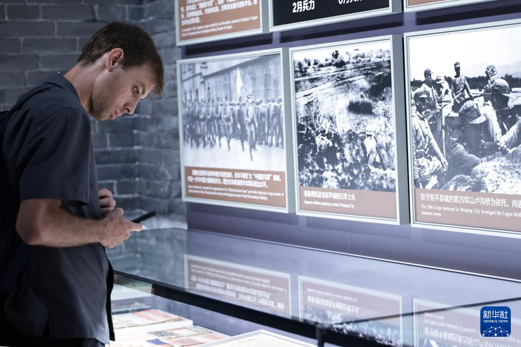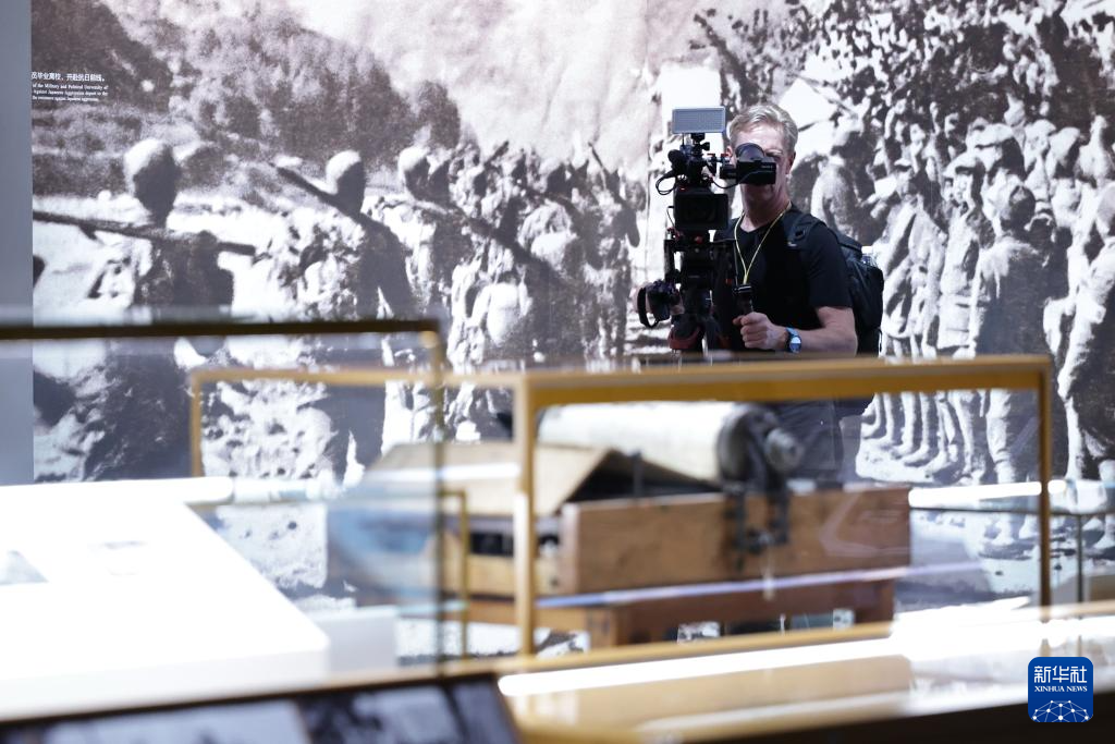 新华社北京8月27日电(记者唐健辉)8月27日下午,中国人民抗日战争暨世界反法西斯战争胜利80周年纪念活动新闻中心举行首场外出参观采访活动,近200名境内外记者赴中国人民抗日战争纪念馆、宛平城和卢沟桥等地参观采访。 8月27日,一名来自巴基斯坦的记者在活动上接受采访。新华社记者 张玉薇 摄 本场外出参观采访活动的主题为“中国人民抗日战争暨世界反法西斯战争胜利80周年”,参加活动的记者来自60多个国家和地区的130余家媒体。 参观《为了民族解放与世界和平——纪念中国人民抗日战争暨世界反法西斯战争胜利80周年》主题展览时,境内外记者们凝神观看,认真聆听讲解。 中国人民抗日战争纪念馆副馆长赖生亮介绍,此次主题展览展出1525张照片、3237件文物,全景式展现了在中国共产党倡导建立的抗日民族统一战线旗帜下,海内外中华儿女以强烈的家国情怀,空前团结起来,谱写为国家生存而战、为民族复兴而战、为人类正义而战的雄壮史诗。 丰富详实的展陈、大量珍贵的文物和艰苦卓绝的抗战场景给记者们留下难忘印象。他们纷纷表示,通过这次参观采访深刻体会到和平来之不易,更加坚定了铭记历史、珍爱和平的信念,将为推动世界和平、携手构建人类命运共同体发挥积极作用。 8月27日,中外媒体记者在中国人民抗日战争纪念馆内采访。新华社记者 张玉薇 摄 8月27日,一名记者在中国人民抗日战争纪念馆内采访。新华社记者 张玉薇 摄 8月27日,一名记者在中国人民抗日战争纪念馆内采访。新华社记者 张玉薇 摄 8月27日,一名记者在中国人民抗日战争纪念馆内采访。新华社记者 张玉薇 摄 8月27日,一名记者在中国人民抗日战争纪念馆内采访。新华社记者 张玉薇 摄 8月27日,一名记者在中国人民抗日战争纪念馆内采访。新华社记者 张玉薇 摄 8月27日,一名记者在中国人民抗日战争纪念馆内采访。新华社记者 张玉薇 摄