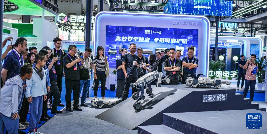 8月28日,观展者在数博会上观看轮足机器人。 8月28日,2025中国国际大数据产业博览会在贵州贵阳开幕。本届数博会以“数聚产业动能 智启发展新篇”为主题,举办26场交流活动和34场系列特色活动,设置了数智领航、数智基建、数智服务、数智应用、数智创新、数智体验6大主题展馆,展示一批数字经济领域的新技术、新产品、新应用。 新华社记者 陶亮 摄 8月28日,小朋友在数博会上观看机器狗。 8月28日,2025中国国际大数据产业博览会在贵州贵阳开幕。本届数博会以“数聚产业动能 智启发展新篇”为主题,举办26场交流活动和34场系列特色活动,设置了数智领航、数智基建、数智服务、数智应用、数智创新、数智体验6大主题展馆,展示一批数字经济领域的新技术、新产品、新应用。 新华社记者 陶亮 摄 这是数博会上展出的带电作业机器人(8月28日摄)。 8月28日,2025中国国际大数据产业博览会在贵州贵阳开幕。本届数博会以“数聚产业动能 智启发展新篇”为主题,举办26场交流活动和34场系列特色活动,设置了数智领航、数智基建、数智服务、数智应用、数智创新、数智体验6大主题展馆,展示一批数字经济领域的新技术、新产品、新应用。 新华社记者 陶亮 摄 8月28日,南方电网工作人员在数博会上帮观展者佩戴攀登用外骨骼。 8月28日,2025中国国际大数据产业博览会在贵州贵阳开幕。本届数博会以“数聚产业动能 智启发展新篇”为主题,举办26场交流活动和34场系列特色活动,设置了数智领航、数智基建、数智服务、数智应用、数智创新、数智体验6大主题展馆,展示一批数字经济领域的新技术、新产品、新应用。 新华社记者 陶亮 摄 8月28日,小朋友在数博会上体验AI智能驾驶座舱。 8月28日,2025中国国际大数据产业博览会在贵州贵阳开幕。本届数博会以“数聚产业动能 智启发展新篇”为主题,举办26场交流活动和34场系列特色活动,设置了数智领航、数智基建、数智服务、数智应用、数智创新、数智体验6大主题展馆,展示一批数字经济领域的新技术、新产品、新应用。 新华社记者 杨文斌 摄 8月28日,中国电信在数博会上展出的一款机器狗在进行舞狮表演。 8月28日,2025中国国际大数据产业博览会在贵州贵阳开幕。本届数博会以“数聚产业动能 智启发展新篇”为主题,举办26场交流活动和34场系列特色活动,设置了数智领航、数智基建、数智服务、数智应用、数智创新、数智体验6大主题展馆,展示一批数字经济领域的新技术、新产品、新应用。 新华社记者 杨文斌 摄 8月28日,机器狗在数博会展馆附近过马路。 8月28日,2025中国国际大数据产业博览会在贵州贵阳开幕。本届数博会以“数聚产业动能 智启发展新篇”为主题,举办26场交流活动和34场系列特色活动,设置了数智领航、数智基建、数智服务、数智应用、数智创新、数智体验6大主题展馆,展示一批数字经济领域的新技术、新产品、新应用。 新华社记者 杨文斌 摄 8月28日,参展商在数博会上直播推介一款植保无人机。 8月28日,2025中国国际大数据产业博览会在贵州贵阳开幕。本届数博会以“数聚产业动能 智启发展新篇”为主题,举办26场交流活动和34场系列特色活动,设置了数智领航、数智基建、数智服务、数智应用、数智创新、数智体验6大主题展馆,展示一批数字经济领域的新技术、新产品、新应用。 新华社记者 杨文斌 摄 8月28日,南方电网在数博会上展出的一款AI智能画像机器人在作画。 8月28日,2025中国国际大数据产业博览会在贵州贵阳开幕。本届数博会以“数聚产业动能 智启发展新篇”为主题,举办26场交流活动和34场系列特色活动,设置了数智领航、数智基建、数智服务、数智应用、数智创新、数智体验6大主题展馆,展示一批数字经济领域的新技术、新产品、新应用。 新华社记者 杨文斌 摄 8月28日,中国电信展出的一款机器人在数博会上跳舞。 8月28日,2025中国国际大数据产业博览会在贵州贵阳开幕。本届数博会以“数聚产业动能 智启发展新篇”为主题,举办26场交流活动和34场系列特色活动,设置了数智领航、数智基建、数智服务、数智应用、数智创新、数智体验6大主题展馆,展示一批数字经济领域的新技术、新产品、新应用。 新华社记者 杨文斌 摄