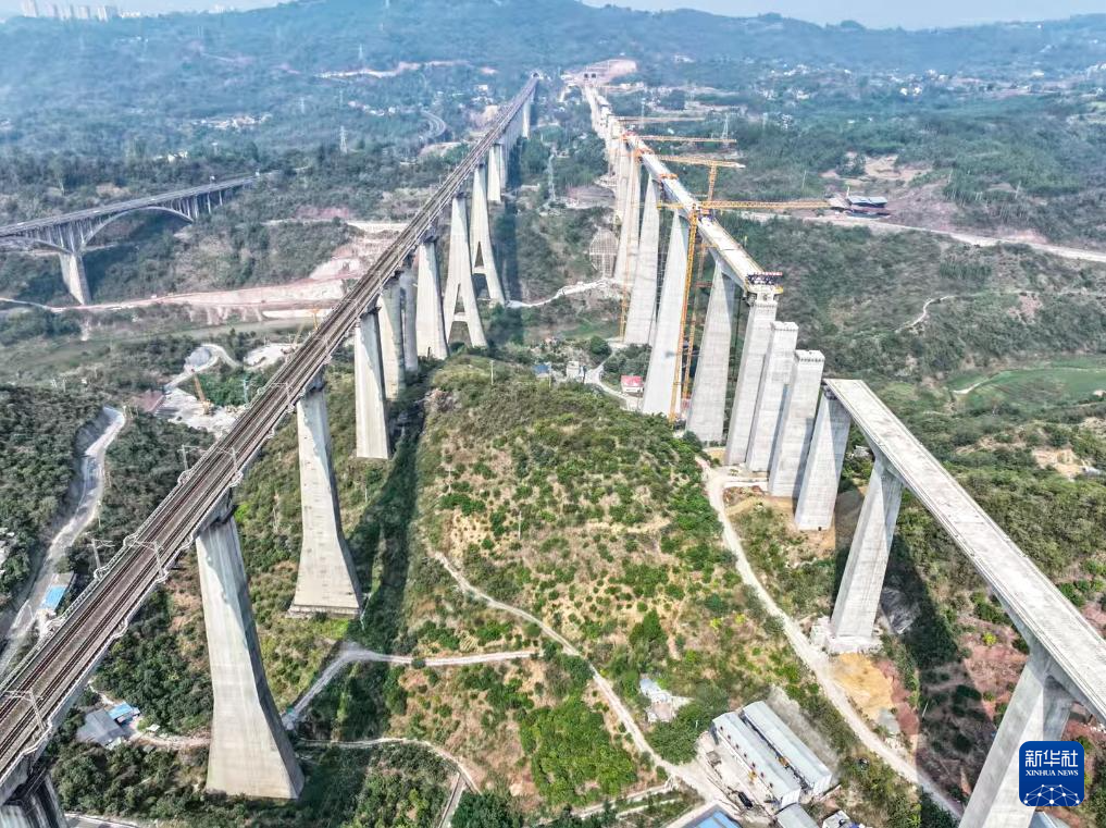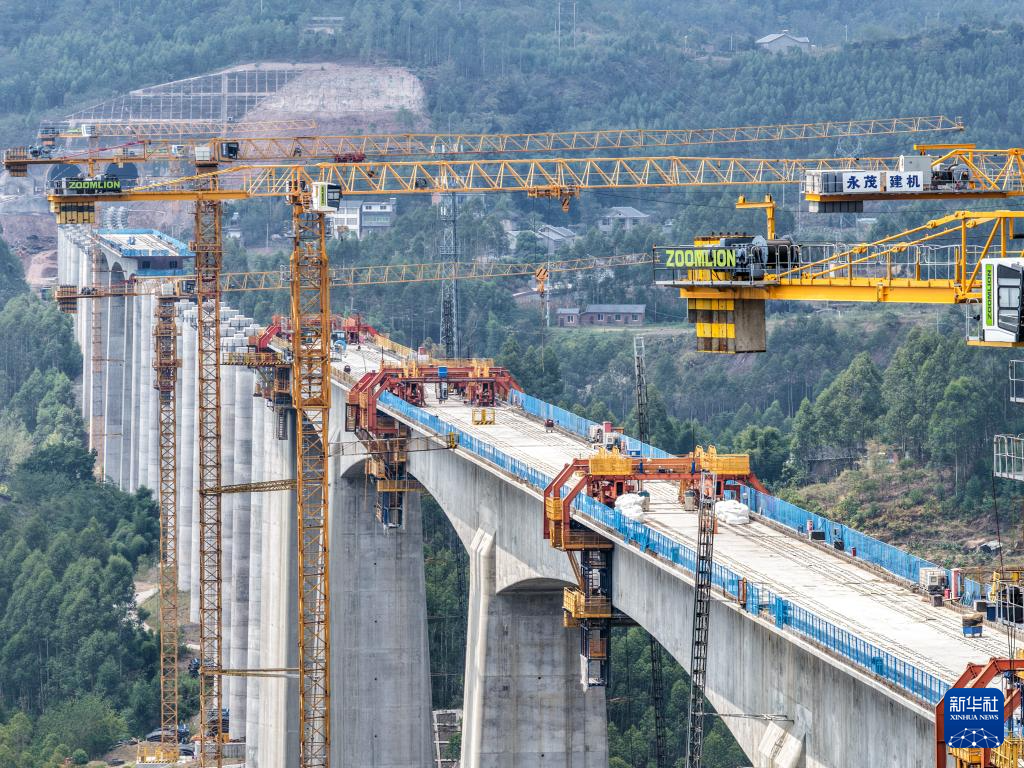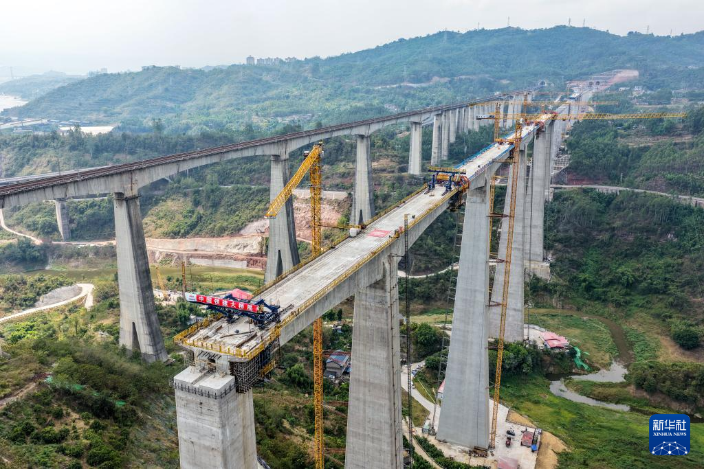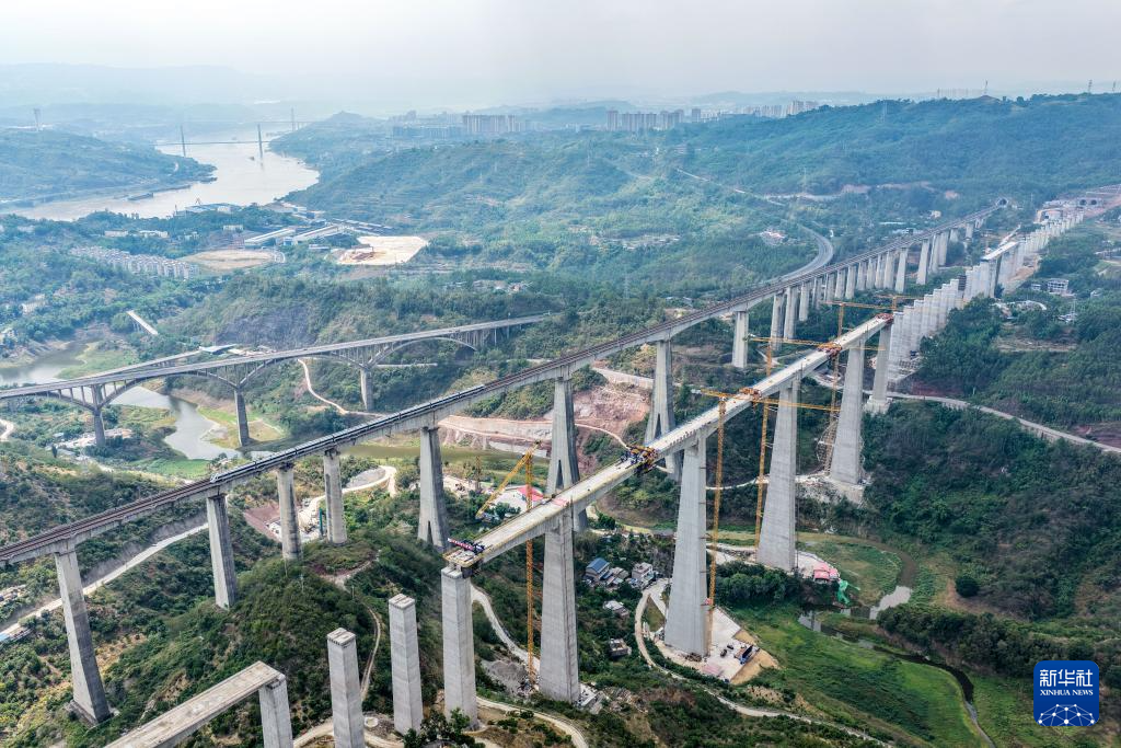 这是8月31日拍摄的渝万高铁蔡家沟双线特大桥建设现场(无人机照片)。 9月1日,由中国铁建大桥局承建的新建重庆至万州高速铁路(渝万高铁)蔡家沟双线特大桥顺利合龙,为全线按期通车奠定坚实基础。 蔡家沟双线特大桥位于重庆市涪陵区,横跨长江支流,是全线重难点工程。大桥主跨采用连续刚构设计,整体呈“两端短、中间长”的对称结构,总跨度达584米。 渝万高铁是我国“八纵八横”高铁网包(银)海、京昆通道的组成部分,正线全长251公里,设计时速350公里。 新华社记者 唐奕 摄 这是8月31日拍摄的渝万高铁蔡家沟双线特大桥建设现场(无人机照片)。 9月1日,由中国铁建大桥局承建的新建重庆至万州高速铁路(渝万高铁)蔡家沟双线特大桥顺利合龙,为全线按期通车奠定坚实基础。 蔡家沟双线特大桥位于重庆市涪陵区,横跨长江支流,是全线重难点工程。大桥主跨采用连续刚构设计,整体呈“两端短、中间长”的对称结构,总跨度达584米。 渝万高铁是我国“八纵八横”高铁网包(银)海、京昆通道的组成部分,正线全长251公里,设计时速350公里。 新华社记者 唐奕 摄 这是8月31日拍摄的渝万高铁蔡家沟双线特大桥建设现场(无人机照片)。 9月1日,由中国铁建大桥局承建的新建重庆至万州高速铁路(渝万高铁)蔡家沟双线特大桥顺利合龙,为全线按期通车奠定坚实基础。 蔡家沟双线特大桥位于重庆市涪陵区,横跨长江支流,是全线重难点工程。大桥主跨采用连续刚构设计,整体呈“两端短、中间长”的对称结构,总跨度达584米。 渝万高铁是我国“八纵八横”高铁网包(银)海、京昆通道的组成部分,正线全长251公里,设计时速350公里。 新华社记者 唐奕 摄 这是8月31日拍摄的渝万高铁蔡家沟双线特大桥建设现场(无人机照片)。 9月1日,由中国铁建大桥局承建的新建重庆至万州高速铁路(渝万高铁)蔡家沟双线特大桥顺利合龙,为全线按期通车奠定坚实基础。 蔡家沟双线特大桥位于重庆市涪陵区,横跨长江支流,是全线重难点工程。大桥主跨采用连续刚构设计,整体呈“两端短、中间长”的对称结构,总跨度达584米。 渝万高铁是我国“八纵八横”高铁网包(银)海、京昆通道的组成部分,正线全长251公里,设计时速350公里。 新华社记者 唐奕 摄 这是9月1日拍摄的渝万高铁蔡家沟双线特大桥建设现场(无人机照片)。 9月1日,由中国铁建大桥局承建的新建重庆至万州高速铁路(渝万高铁)蔡家沟双线特大桥顺利合龙,为全线按期通车奠定坚实基础。 蔡家沟双线特大桥位于重庆市涪陵区,横跨长江支流,是全线重难点工程。大桥主跨采用连续刚构设计,整体呈“两端短、中间长”的对称结构,总跨度达584米。 渝万高铁是我国“八纵八横”高铁网包(银)海、京昆通道的组成部分,正线全长251公里,设计时速350公里。 新华社发(孙鹏 摄) 8月31日,工人在渝万高铁蔡家沟双线特大桥建设现场施工作业。 9月1日,由中国铁建大桥局承建的新建重庆至万州高速铁路(渝万高铁)蔡家沟双线特大桥顺利合龙,为全线按期通车奠定坚实基础。 蔡家沟双线特大桥位于重庆市涪陵区,横跨长江支流,是全线重难点工程。大桥主跨采用连续刚构设计,整体呈“两端短、中间长”的对称结构,总跨度达584米。 渝万高铁是我国“八纵八横”高铁网包(银)海、京昆通道的组成部分,正线全长251公里,设计时速350公里。 新华社记者 唐奕 摄 8月31日,工人在渝万高铁蔡家沟双线特大桥建设现场施工作业。 9月1日,由中国铁建大桥局承建的新建重庆至万州高速铁路(渝万高铁)蔡家沟双线特大桥顺利合龙,为全线按期通车奠定坚实基础。 蔡家沟双线特大桥位于重庆市涪陵区,横跨长江支流,是全线重难点工程。大桥主跨采用连续刚构设计,整体呈“两端短、中间长”的对称结构,总跨度达584米。 渝万高铁是我国“八纵八横”高铁网包(银)海、京昆通道的组成部分,正线全长251公里,设计时速350公里。 新华社记者 唐奕 摄 这是8月31日拍摄的渝万高铁蔡家沟双线特大桥建设现场(无人机照片)。 9月1日,由中国铁建大桥局承建的新建重庆至万州高速铁路(渝万高铁)蔡家沟双线特大桥顺利合龙,为全线按期通车奠定坚实基础。 蔡家沟双线特大桥位于重庆市涪陵区,横跨长江支流,是全线重难点工程。大桥主跨采用连续刚构设计,整体呈“两端短、中间长”的对称结构,总跨度达584米。 渝万高铁是我国“八纵八横”高铁网包(银)海、京昆通道的组成部分,正线全长251公里,设计时速350公里。 新华社记者 唐奕 摄 这是8月31日拍摄的渝万高铁蔡家沟双线特大桥建设现场(无人机照片)。 9月1日,由中国铁建大桥局承建的新建重庆至万州高速铁路(渝万高铁)蔡家沟双线特大桥顺利合龙,为全线按期通车奠定坚实基础。 蔡家沟双线特大桥位于重庆市涪陵区,横跨长江支流,是全线重难点工程。大桥主跨采用连续刚构设计,整体呈“两端短、中间长”的对称结构,总跨度达584米。 渝万高铁是我国“八纵八横”高铁网包(银)海、京昆通道的组成部分,正线全长251公里,设计时速350公里。 新华社记者 唐奕 摄