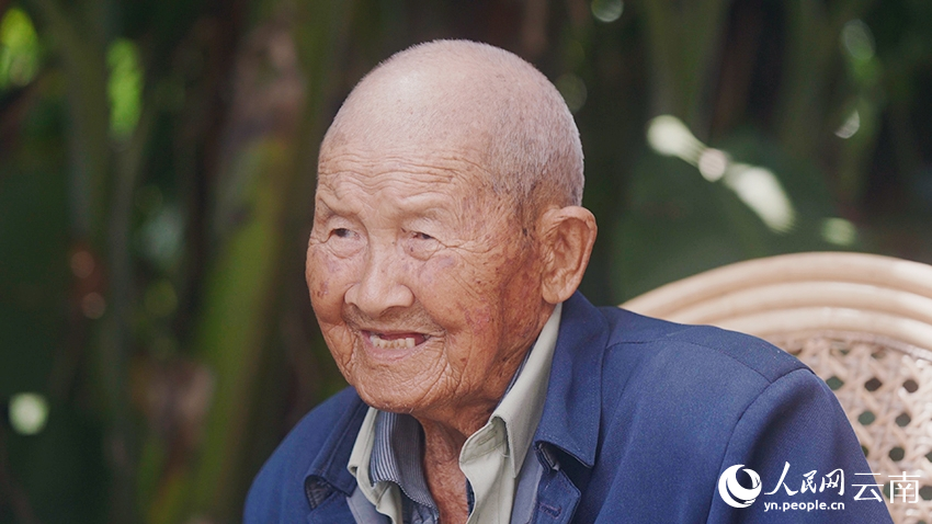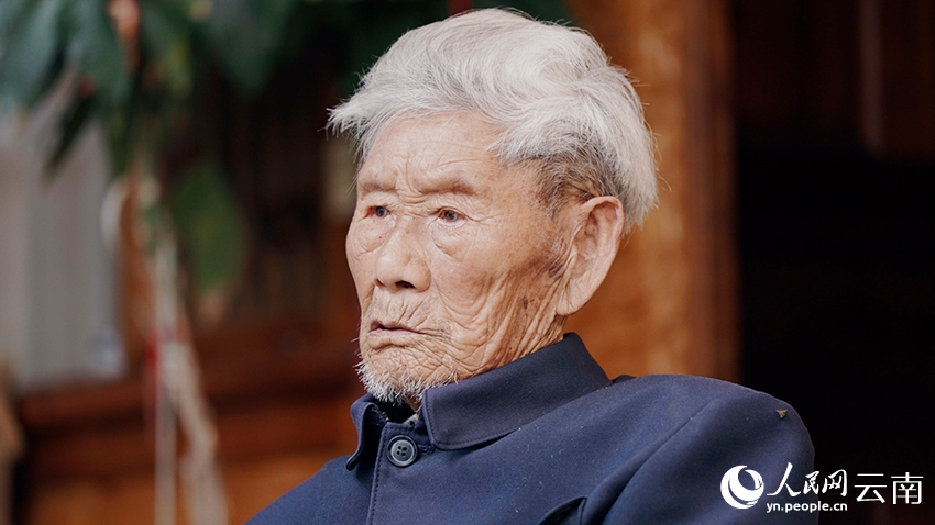 参加过滇西抗战的何绍从老人,今年已经102岁。人民网记者 张若涵摄