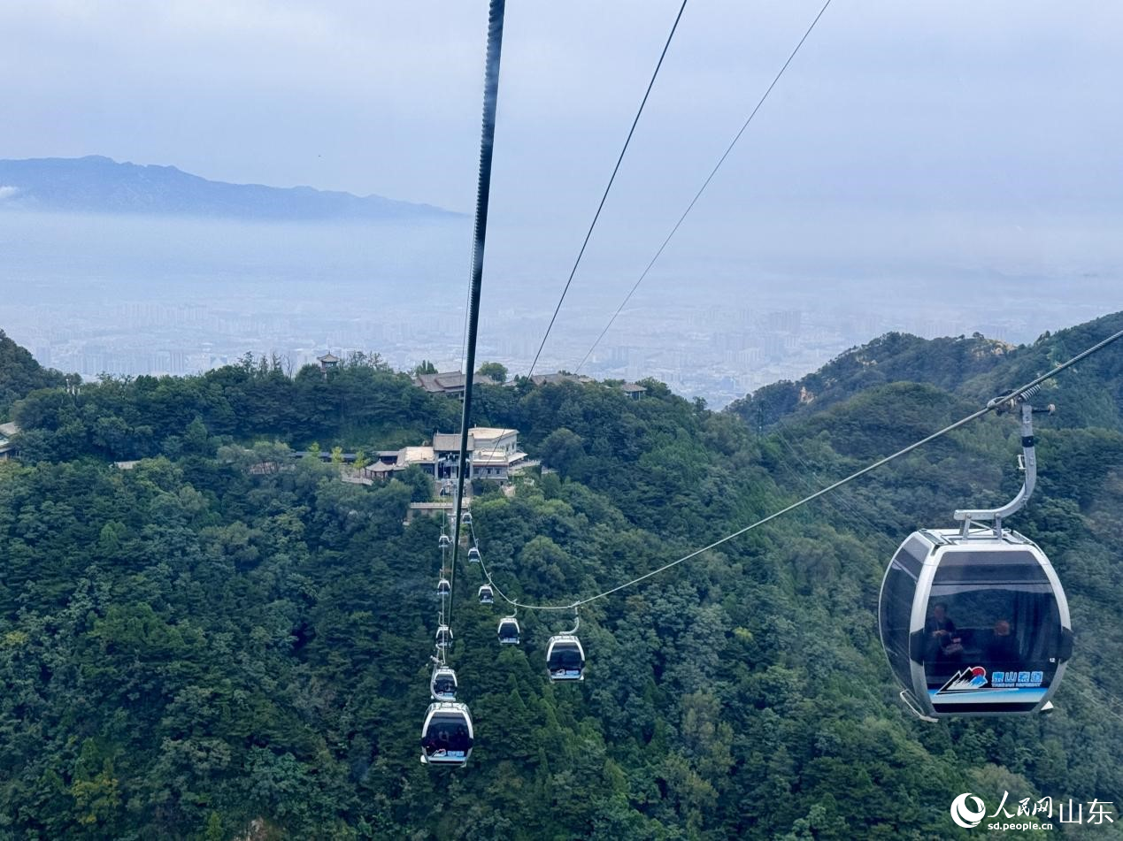 游客乘着缆车穿梭,云海峰峦尽收眼底。人民网 郑昕桥摄
