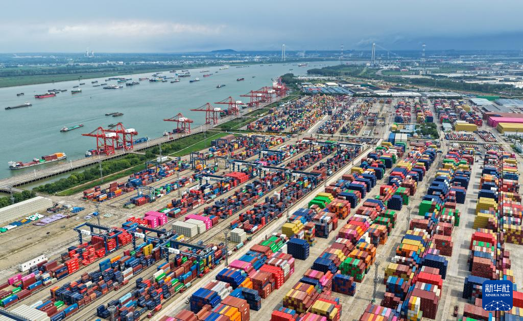 9月8日在江苏省港口集团南京港龙潭港区拍摄的准备装船出口的汽车(无人机照片)。 9月8日,海关总署发布8月份外贸数据,我国货物贸易进出口总值3.87万亿元,同比增长3.5%,其中出口2.3万亿元、进口1.57万亿元,同比分别增长4.8%和1.7%,连续3个月实现双增长。 新华社发(方东旭摄) 9月8日拍摄的江苏省港口集团南京港龙潭港区(无人机照片)。 9月8日,海关总署发布8月份外贸数据,我国货物贸易进出口总值3.87万亿元,同比增长3.5%,其中出口2.3万亿元、进口1.57万亿元,同比分别增长4.8%和1.7%,连续3个月实现双增长。 新华社发(方东旭摄) 9月8日,在江苏省扬州港,桥吊在装卸货物(无人机照片)。 9月8日,海关总署发布8月份外贸数据,我国货物贸易进出口总值3.87万亿元,同比增长3.5%,其中出口2.3万亿元、进口1.57万亿元,同比分别增长4.8%和1.7%,连续3个月实现双增长。 新华社发(孟德龙摄) 9月8日拍摄的江苏省扬州港集装箱堆场(无人机照片)。 9月8日,海关总署发布8月份外贸数据,我国货物贸易进出口总值3.87万亿元,同比增长3.5%,其中出口2.3万亿元、进口1.57万亿元,同比分别增长4.8%和1.7%,连续3个月实现双增长。 新华社发(孟德龙摄) 9月8日,在江苏省连云港市海州区锦屏工业园一家外贸企业,工人在生产线上赶制一批LED照明灯具海外订单。 9月8日,海关总署发布8月份外贸数据,我国货物贸易进出口总值3.87万亿元,同比增长3.5%,其中出口2.3万亿元、进口1.57万亿元,同比分别增长4.8%和1.7%,连续3个月实现双增长。 新华社发(耿玉和摄) 9月8日,在山东港口集团青岛港,一艘装载外贸集装箱的货轮驶离泊位(无人机照片)。 9月8日,海关总署发布8月份外贸数据,我国货物贸易进出口总值3.87万亿元,同比增长3.5%,其中出口2.3万亿元、进口1.57万亿元,同比分别增长4.8%和1.7%,连续3个月实现双增长。 新华社发(俞方平 摄)