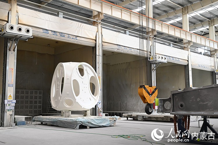 上色后的风电轮毂。人民网记者 刘艺琳摄