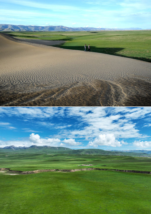 甘肃位于黄河上游,黄河在甘肃两进两出,流经913公里。这913公里不仅是一条地理上的脉络,也是甘肃在黄河流域生态保护和高质量发展中一份沉甸甸的责任。 习近平总书记2019年8月在甘肃考察时指出,“甘肃是黄河流域重要的水源涵养区和补给区,要首先担负起黄河上游生态修复、水土保持和污染防治的重任”;2024年9月在甘肃省兰州市主持召开全面推动黄河流域生态保护和高质量发展座谈会上强调,“开创黄河流域生态保护和高质量发展新局面”。 甘肃牢记习近平总书记的嘱托,强化使命担当,彰显上游作为,不断改革创新,全面推动黄河国家战略落实迈上新台阶。 系统治理 一河净水送下游 初秋,地处甘青川三省交界处的玛曲草原生机盎然。玛曲,藏语意为“黄河”。黄河环绕玛曲全境433公里。 眼前的美景令人很难想象,此前玛曲草原沙化草场面积曾一度达到80多万亩,直接影响黄河下游的水质和水量。 这是甘肃省甘南藏族自治州玛曲县阿万仓湿地景色(2023年7月6日摄,无人机照片)。新华社记者 陈斌 摄 黄河之“困”,既有客观制约,也有人为因素。黄河甘肃段部分地区水土流失严重,生态脆弱易退化;甘肃作为欠发达地区,发展历史欠账大,部分地区污染排放强度较高。 难题何解? 甘肃态度坚定:深化系统治理、统筹开源节流、突出管治结合、推进转型发展,确保一河净水送下游。 陇原大地上,一场战鼓铿锵的母亲河保卫战打响。 这是一场时不我待的源头治理攻坚战—— 2021年开始,投资逾50亿元的甘南黄河上游水源涵养区山水林田湖草沙一体化保护和修复工程实施。统筹推进水工程建设、水灾害防御、水资源管理、水环境整治各项工作,不断完善“流域治理一幅图”…… 如今,玛曲县草原综合植被盖度达到98.4%,可治理草原湿地全部治理完毕。 拼版照片:上图为2011年6月9日,两名技术人员在查看甘肃省甘南藏族自治州玛曲县欧强村的草场沙化退化情况,这里是当时玛曲草原沙化最为严重的草场之一(新华社记者聂建江摄);下图为2023年7月6日拍摄的甘南藏族自治州玛曲县欧强村境内经过治理修复的草原(新华社记者陈斌摄)。新华社发 目前,黄河玛曲出境流量达到173亿立方米,较10年前提高近五成。 “小时候,我们常在河畔滑沙;如今,孩子们在岸边滑草。”玛曲县自然资源局工程师马春林说。 这是一场全流域的水土保卫战—— 水土流失是黄河“心腹”之患,也是甘肃“切肤”之痛。甘肃黄河流域涉及全省9个市州,占全省面积的34%。2019年,黄河甘肃段水土流失面积达4.71万平方公里。 “山顶造林戴帽子、山坡种草披褂子、山腰梯田系带子、山下建棚围裙子、沟底打坝穿靴子”,聚焦“土不下山、泥不出沟、就地拦蓄、改善生态”的目标,甘肃探索出独特的水土流失治理模式。 定西市自2020年起连续4年开展“绿满陇中”行动,每年拦蓄3700多万吨泥沙。 今年1月,黄河流域最大一笔水土保持生态产品转化交易在定西市签约,交易额破亿元。 数据显示,2019年以来,甘肃省黄河流域全口径治理水土流失面积累计超2万平方公里。 曾经以土黄为主色调的黄河甘肃段正在渐渐变绿。 这是一场雷厉风行的污染防治歼灭战—— 关停机井压减水量、提标改造污水处理厂、启动实施雨污分流工程、清理黄河干流城区段趸船……兰州多管齐下,为母亲河“减负”“美颜”。 位于兰州市主城区上游的兰州石化公司,关停所有地下水、地表水取水工程,实施“源长制”污染源头管控,对化工污水处理装置和炼油污水处理装置均完成升级改造。改造后出水化学需氧量(COD)浓度由50毫克每升下降到30毫克每升。 2024年,甘肃省黄河流域水质优良比例达到97.56%,同比增长4.88个百分点,黄河流域生态环境质量持续改善,稳定实现“一河净水送下游”。 深度保护 改革创新走绿色发展之路 甘肃黄河流域年均降水量、人均和耕地亩均水资源占有量分别为全流域的十分之七、三分之一、六分之一,流域集中了甘肃80%左右的人口和80%左右的地区生产总值(GDP),保护和发展的矛盾突出。 何以破题? 甘肃行动果断——坚决执行“四水四定”原则,以壮士断腕的决心推进节水改革,在扎牢“水管子”的基础上推进循环经济发展。 这是一场深度节水控水攻坚战:推行节水灌溉、发展旱作农业、开展畜牧渔业节水、强化再生水利用、促进雨水利用…… 这是一项严格的刚性约束:建立水资源承载力分区管控体系,限制水资源严重短缺地区城市发展规模、高耗水项目建设,建立覆盖全流域的取用水总量控制体系…… 这是多地一系列的积极举措:引洮供水工程多措并举推进精准调度,整体水损控制在7%以内;天水市麦积区南山花牛苹果基地数字智慧滴灌系统实现“水不下山、泥不入沟”;在白银市白银区,甘肃东方钛业工业用水实现3次循环,生产1吨钛白粉的原水用水量由60吨减至24吨…… 甘肃省临夏回族自治州永靖县境内的刘家峡库区(2025年9月15日摄,无人机照片)。新华社发(侯齐摄) 据统计,2024年甘肃省万元GDP、万元工业增加值用水量分别为41.8立方米、15.8立方米,同比分别减少3.2立方米、0.2立方米。 节水为基,甘肃产业升级迸发绿色新活力。 “既要还清旧账、加大保护,也要用创新思维和创新办法推动发展、谋划新篇。”甘肃省发展改革委主任丁巨胜说。 甘肃立足资源禀赋和区位优势,深入实施强科技、强工业