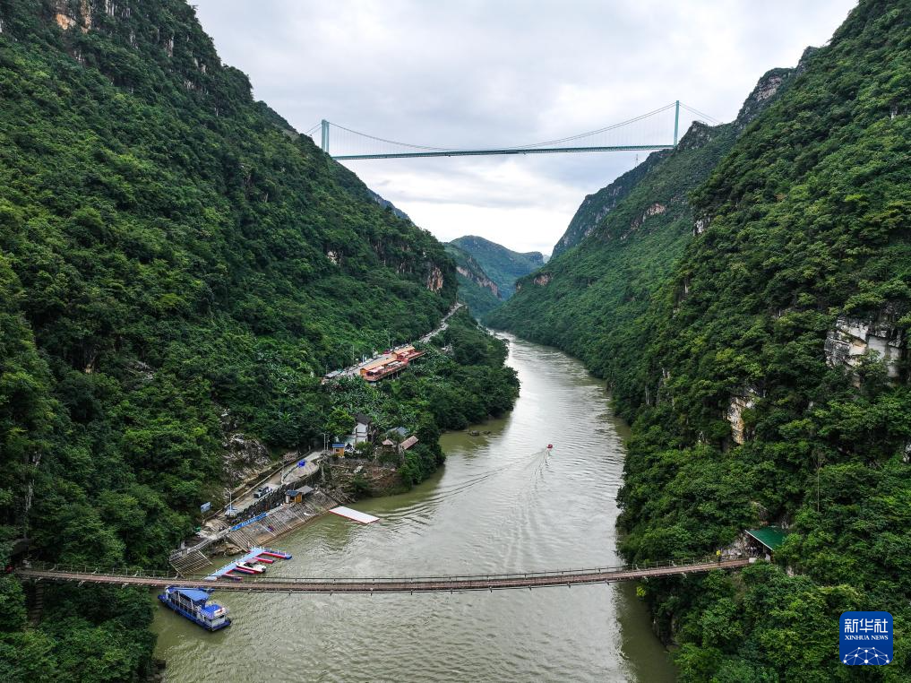 新华社贵阳9月28日电 题:天堑通途 山乡巨变——写在新的世界第一高桥通车之际 新华社记者杨三军、欧东衢、向定杰 “花江峡谷大桥正式通车!” 9月28日上午,随着第一辆车驶过桥面,新的世界第一高桥正式通车。 9月28日拍摄的贵州花江峡谷大桥(无人机照片)。新华社记者 欧东衢 摄 桥面下625米处的江面波涛汹涌。亿万年间,湍急的水流在崇山峻岭间切割出一道深深的“裂缝”。而修建在“裂缝”上的花江峡谷大桥,将峡谷两岸连接起来。 新的桥梁世界纪录再次刷新:花江峡谷大桥主桥跨径居山区桥梁跨径世界第一、桥梁高度居世界第一,“横竖”都是世界第一。 天堑通途,山乡巨变。纪录刷新的背后,是数代桥梁建设者用心血托举的中国基建奇迹,是中国工程师直面世界级难题、以自主创新提交的答案,是一个国家逢山开路、遇水架桥、迈向复兴的豪迈气魄。 万桥飞架成就“千年梦想” 9月27日拍摄的贵州花江峡谷大桥(无人机照片)。新华社记者 欧东衢 摄 秋日的北盘江,花江大峡谷内云雾翻涌如潮,花江峡谷大桥宛如钢铁长龙破云而出。 一桥飞架,天堑变坦途。大桥全长2890米,可将两岸通行时间从两个多小时缩短到两分钟左右。 “花江峡谷大桥下奔流不息的北盘江,默默见证贵州的交通变迁。”贵州交投集团所属桥梁集团六安高速8标项目副经理王淞钰说,过去这里是茶马古道的必经之地,后来又相继修了铁索桥、花江桥、北盘江大桥,而今,贵州桥梁建设者又创造了新的历史。 9月23日拍摄的贵州花江峡谷大桥(无人机照片)。新华社记者 杨文斌 摄 在北盘江上,建设于1898年的花江铁索桥曾在红军长征和抗日战争中发挥过战略作用,是重要的“抗战生命线”。今天,锈迹斑斑的铁索桥与花江峡谷大桥遥相呼应,仿佛进行一场跨时空的“对话”:旧的铁索桥在岁月长河中摇荡,铭刻着艰难岁月里的中国力量;新的超级大桥气势如虹,宣告着新时代里的中国自信。 此前的世界第一高桥也在北盘江上。2016年12月通车的杭瑞高速北盘江第一桥,桥面至江面垂直高度565.4米。两座“超级大桥”在同一条江水的见证下完成“世界第一高桥”称号的交接,直线距离只有100多公里。 从卫星上看,贵州的百万群山如同绿色的海洋,而在绿色的“波涛”之间,唯有建桥能帮助这片土地上的人们实现通江达海的梦想。 两亿多年前,一系列的地壳运动将原本处于汪洋大海之中的贵州挤压出千沟万壑,125.8万座大山在此形成。 晚霞中的贵州花江峡谷大桥(9月27日摄,无人机照片)。新华社记者 陶亮 摄 “对山喊得应,走路要半天”“不是夜郎真自大,只因无路去中原”,一句句民间俗语,道出多少无奈与心酸。 600多年前,奢香夫人带领部属在贵州“刊山凿险、开置驿道”,驿道全长500余里,东起湖广,西连云南,北接巴蜀;500多年前,王阳明因贵州的道路闭塞而感叹“连峰际天兮,飞鸟不通”;400多年前,明人葛镜在贵州的绝壁之上建石桥,耗时三十余年而成。 出山,是被群山阻隔的人们千年来的梦想所在! 上世纪50年代初,贵州仅有300余座桥梁;80年代,贵州有2900多座桥梁。 党的十八大以来,贵州进入桥梁建设的“冲刺期”,一座座桥梁跨越群山、让曾经的“山地王国”变身“高速平原”。目前,贵州已建和在建的桥梁超3.2万座。 云雾缭绕中的贵州花江峡谷大桥(9月26日摄,无人机照片)。新华社记者 欧东衢 摄 现在,贵州公路总里程突破22万公里,相当于绕地球赤道5.5圈;高速公路通车里程超9000公里;已建和在建的桥梁长度连起来超过5400公里,几乎相当于纵贯整个中国的距离。 从“不平”到“平”、从“千沟万壑”到“高速平原”、从“交通闭塞”到成为“中国西南交通枢纽”,在万桥飞架的新图景中,贵州更加坚定了开放发展的信心。 多项纪录展现中国力量 “这是一座展示中国创新能力的‘标杆桥’。”贵州省交通运输厅厅长张胤说,花江峡谷大桥在抗风设计、高空施工等领域实现了多项技术突破,为全球山区桥梁建设提供了“中国方案”。大桥创新采用智能缆吊系统、2000兆帕级高强钢丝等先进技术,获得授权专利21项,多项技术成果纳入国家桥梁建设标准。 9月26日拍摄的贵州花江峡谷大桥(无人机照片)。新华社记者 欧东衢 摄 在花江峡谷大桥三年多的建设周期中,2万多吨的钢桁梁,仅用2个月就完成吊装;3.8万平方米的桥面,1个多月完成了5层铺装……“中国速度”令人赞叹。 花江峡谷大桥是“国家卓越工程师团队”——贵州交通山区峡谷桥梁建造技术团队在悬崖绝壁处显身手的又一力作。 面对更高的高度、更大的跨度,工程师们创新北斗定位系统,施工误差控制在5毫米以内;引入智慧缆索技术,在国际首创主缆嵌入光纤传感器实时监测应力;采用测风激光雷达,可抵御峡谷14级风…… “创新都是环境逼出来的。”贵州交投集团副总经理、总工程师韩洪举说,在贵州修建桥梁,地形的挑战最大,由于拼装场地受限,运输条件困难,已有的工艺工法不适用,几乎是一桥一案。 9月27日,在贵州省贞丰县平街乡花江村,自媒体博主谢朝卿在花江峡谷大桥旁操作无人机。新华社记者 杨文斌 摄 在花江峡谷大桥建造实践中,为帮助桥体“瘦身”,团队创新采用高性能锻焊组合式索鞍结构,相比传统索鞍,力学性能提升30%以上,用钢量节约28.7%。 创造一个又一个“第一”,打破一个又一个“不可能”,建设团队用坚韧