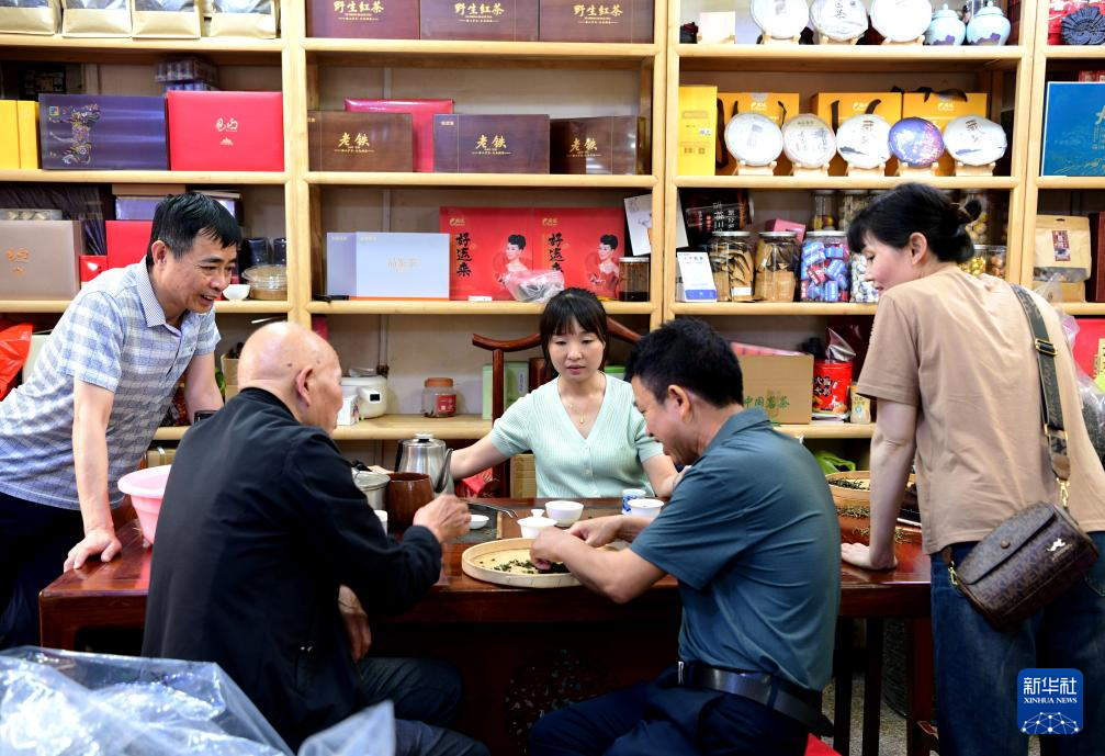 这是安溪县西坪镇的铁观音生态茶山(2024年5月9日摄,无人机照片)。 新华社记者 魏培全 摄 新华社福州10月10日电 题:在这座闽南小城,最传统的茶业正发生最新锐的变化! 新华社记者项开来、庞梦霞、黄景鸿 《2025胡润中国茶业百强县》榜单中,这个“铁观音”发源地位居榜首,全县近两成的地区生产总值来自茶产业,是全国重要的茶叶交易集散地和贸易中心……它是安溪,位于福建东南部的一座县城。 在闽南俗语中,茶叶又叫“茶米”。对安溪人而言,茶叶如同米粮,约八成人口从事与茶有关的产业。这个曾经的福建最大贫困县,正实现富民兴县的蝶变。而传统茶业,也从“看天做青”走向与卫星遥感、大数据、现代光学技术相关。 种茶卖茶靠智能、看数据 秋日的安溪县桃源有机茶场,目之所及绿意浓郁。 眼下是秋茶采摘旺季。茶农曾炳南背着竹篓,弯腰穿行在一垄垄茶树间,拇指和食指掐住“一芽三叶”的茶树嫩梢,轻轻向上一提,带着露珠的鲜叶便落入掌心。 在安溪县西坪镇珠洋村八马红星茶场,茶农在茶园里采收茶叶(2024年5月9日摄,无人机照片)。 新华社记者 魏培全 摄 安溪人种茶,始于唐末,兴于明清,盛于当代。“清明发芽谷雨采,春夏秋冬茶不同。摇青摇得手酸软,焙火焙出观音红。”民间采茶调记录着茶农的劳作,流传至今。 得益于独特的制作技艺和深厚的茶文化,2022年,安溪铁观音先后被联合国粮农组织和教科文组织认定为“全球重要农业文化遗产”和“人类非物质文化遗产”,成为茶界少有的“双世遗”。 在安溪县西坪镇珠洋村八马红星茶场,工作人员在采摘茶叶(2024年5月9日摄)。 新华社记者 魏培全 摄 如今,在科技赋能下,传统茶叶种植模式正在改变,安溪的茶产业不断向智能化、精准化方向转型。 苍穹之上,“安溪铁观音一号”“安溪铁观音二号”两颗卫星正“俯瞰”全县茶园。在数字福建(安溪)产业园,太空传回的光谱完整显示茶园长势。 泉州中科星桥空天技术有限公司项目经理吴梓安指着屏幕说:“茶园不再需要时时巡看,科技种茶‘数据说了算’,茶农的劳动减轻了,但茶叶管护更及时,品质波动率也变小。” “安溪茶园中,铁观音种植面积超过六成。”安溪县茶业发展中心主任林清杰说,2025年上半年,安溪茶叶产量达3.1万吨。 相较于茶叶产量,安溪的茶叶交易规模更加可观,这个本地年产茶叶6万余吨的山区县,全年茶叶销售总量可达30万吨。 这是位于安溪县的中国茶都茶叶市场(2024年5月8日摄)。 新华社记者 魏培全 摄 “绿叶红镶边,七泡有余香!来闻一闻尝一尝,正宗安溪产的铁观音喽——”在安溪“中国茶都”交易大厅内,茶农们卖力推销,茶商则精挑细选。 这个交易市场建于2000年,现有1800多个店面、3个茶叶交易大厅和3000多个交易摊位,是全国重要的茶叶交易集散地和贸易中心。 线下热闹,线上也红火。 58岁的茶农刘金龙打理着300亩茶园,他把直播间搬进茶园,向“家人们”讲解“晒青”“摇青”等制茶工艺,在社交媒体吸引10多万名粉丝,年销售额的近一半来自网络。 近年来抓住电子商务、直播带货等风口,安溪实现卖茶“24小时不打烊”。目前,全国每4件茶叶电商产品就有1件从安溪发出;全县茶叶网络年零售额超百亿元;电商从业者有7万多人。 以茶叶种植为依托,安溪衍生出了涵盖销售、配套机械、包装、加工等环节的完整产业链。全国三分之一茶叶通用包装来自这里,汇聚了超300家企业,年产值达65亿元。 今年上半年,安溪茶产业综合产值同比增长10.6%。安溪以全国1.2%的茶园面积,生产了全国2%的茶叶,交易了全国近10%的茶叶。 脱贫致富的转型密码 曾一度深陷贫困的安溪,是如何破解财富密码的?靠科技重塑产业,是安溪破局的关键一招。 记者在大宝峰茶庄园的智能化车间看到,茶叶经由输送系统实现“不落地”生产,自动完成晾晒、摇青与发酵。 其实,机器做茶一开始并不被看好。许多经验丰富的老师傅认为,“看天做青”的微妙经验是机器无法替代的。然而,一次生产中的对比让他们的看法发生改变:以往需10人手工摇青至深夜,现仅需2人操作。智能化系统凭借精准可控的参数,彻夜稳定工作,茶叶发酵均匀,品质不逊于人工操作所得。 在福建八马茶业安溪总工厂的第六代铁观音智能化精制生产线上,一名工人在收整下线的铁观音成品茶(2024年5月8日摄)。 新华社记者 魏培全 摄 如今,安溪建起数字福建(安溪)产业园,运用卫星遥感、大数据和现代光学技术,开展病虫害测报、土壤肥力检测、茶叶产量测算等。 凭着刻在骨子里“爱拼才会赢”的信念,安溪人不断拓宽市场。 茶商柯云理忘不了,30多年前,他背着茶具、骑着自行车走街串巷推销茶叶,一路向北,闯入以花茶为主流、对工夫茶颇为陌生的东北市场。不熟悉东北结冰后的路面,经常连人带自行车摔得人仰马翻。挣得“第一桶金”后,他不断完善营销网络,如今已在东北发展上百家门店。 凭着这股精神头,安溪成千上万个“柯云理”成就了业内“无安不成市、无铁不成店”的传奇。如今,全国各地的安溪茶商多达30万人,占据我国茶叶营销渠道的半壁江山。 在安溪县的中国茶都茶叶市场,茶商在市场店铺里拣选铁观音毛茶(2024年5月8日摄)。 新华社记者 魏培全 摄 回望来路,安溪茶产业发展并非一帆风顺,也曾陷入过度开垦、口碑下滑、遭遇其他茶种冲击等风险关口。 2012
