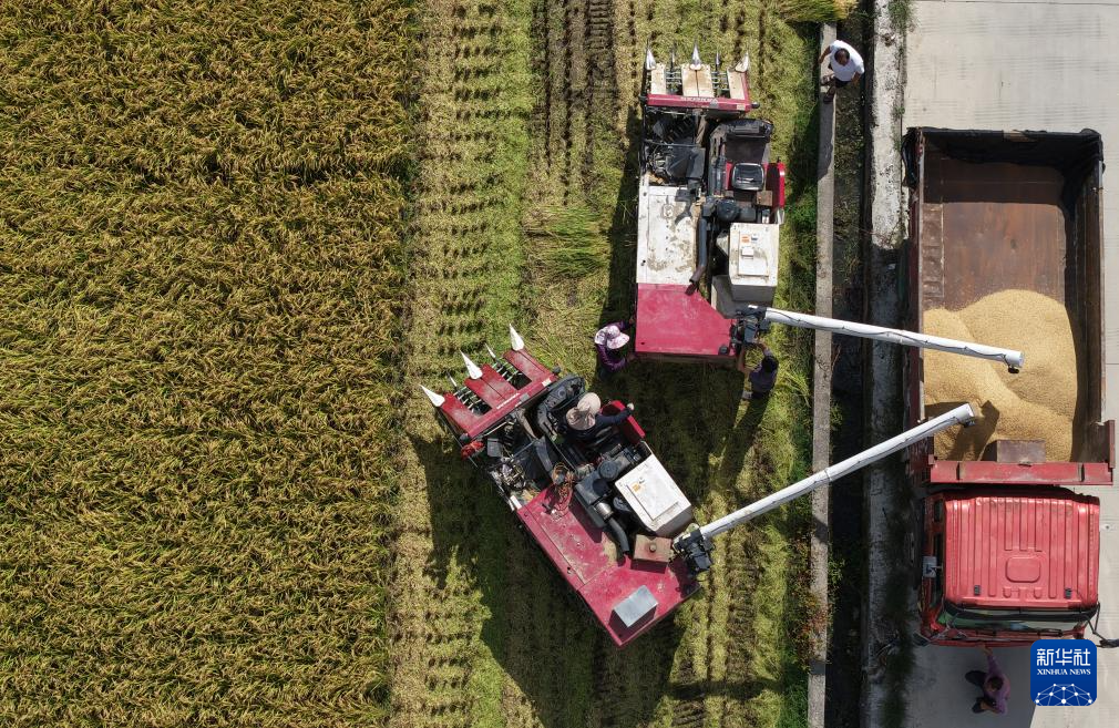 10月10日,工人在云南省大理市喜洲镇水稻种植基地收割水稻(无人机照片)。 据农业农村部最新消息,截至10月10日,全国秋粮收获已过五成。 新华社发(梁志强摄) 10月10日,工人在云南省大理市喜洲镇水稻种植基地收割水稻(无人机照片)。 据农业农村部最新消息,截至10月10日,全国秋粮收获已过五成。 新华社发(梁志强摄) 10月10日,湖北省宜昌市秭归县沙镇溪镇长春村村民驾驶农机在田间收获水稻(无人机照片)。 据农业农村部最新消息,截至10月10日,全国秋粮收获已过五成。 新华社发(雷勇摄) 10月10日,湖北省宜昌市秭归县沙镇溪镇长春村村民驾驶农机在田间收获水稻。 据农业农村部最新消息,截至10月10日,全国秋粮收获已过五成。 新华社发(王罡摄) 10月10日,浙江省台州市仙居县官路镇增仁村农民在晾晒稻谷(无人机照片)。 据农业农村部最新消息,截至10月10日,全国秋粮收获已过五成。 新华社发(王华斌摄) 10月10日,在山东省滨州市高新区小营街道一处粮食烘干服务点,工作人员整理烘干后的玉米。 据农业农村部最新消息,截至10月10日,全国秋粮收获已过五成。 新华社发(初宝瑞摄)