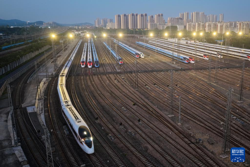 10月10日,动车组列车驶出位于江苏省南通市崇川区的南通动车所(无人机照片)。 10月11日起,全国铁路实行新的列车运行图,铁路客货运输能力、服务品质和运行效率将进一步提升。 新华社发(许丛军摄) 10月10日,一辆列车驶离贵阳北站。 10月11日起,全国铁路实行新的列车运行图,铁路客货运输能力、服务品质和运行效率将进一步提升。 新华社发(张维摄) 10月10日拍摄的停靠在南京动车段南京南动车运用所存车线上的列车(无人机照片)。 10月11日起,全国铁路实行新的列车运行图,铁路客货运输能力、服务品质和运行效率将进一步提升。 新华社发(杨素平摄) 10月10日,列车在宁启铁路江苏省泰州市海陵区境内行驶(无人机照片)。 10月11日起,全国铁路实行新的列车运行图,铁路客货运输能力、服务品质和运行效率将进一步提升。 新华社发(汤德宏摄) 10月10日,动车组列车驶出南京动车段南京南动车运用所(无人机照片)。 10月11日起,全国铁路实行新的列车运行图,铁路客货运输能力、服务品质和运行效率将进一步提升。 新华社发(方东旭摄) 10月10日,动车组列车经过湖北省武汉市黄鹤楼(无人机照片)。 10月11日起,全国铁路实行新的列车运行图,铁路客货运输能力、服务品质和运行效率将进一步提升。 新华社发(赵军摄) 10月10日,在江苏省昆山市,动车组列车通过京沪高铁丹昆特大桥阳澄湖段(无人机照片)。 10月11日起,全国铁路实行新的列车运行图,铁路客货运输能力、服务品质和运行效率将进一步提升。 新华社发(计海新摄) 10月10日,列车行驶在宁启铁路江苏扬州段(无人机照片)。 10月11日起,全国铁路实行新的列车运行图,铁路客货运输能力、服务品质和运行效率将进一步提升。 新华社发(任飞摄) 10月10日在江苏南京拍摄的行驶中的动车组列车(无人机照片)。 10月11日起,全国铁路实行新的列车运行图,铁路客货运输能力、服务品质和运行效率将进一步提升。 新华社发(苏阳摄) 10月10日,动车组列车行驶在江苏省连云港市海州区境内(无人机照片)。 10月11日起,全国铁路实行新的列车运行图,铁路客货运输能力、服务品质和运行效率将进一步提升。 新华社发(耿玉和摄)