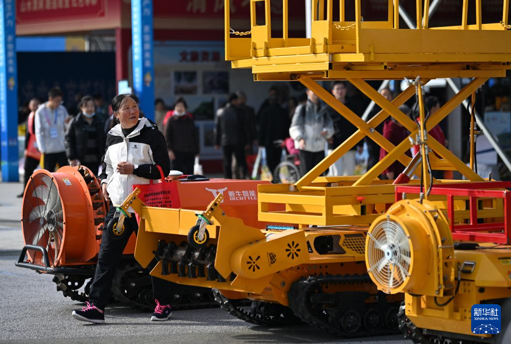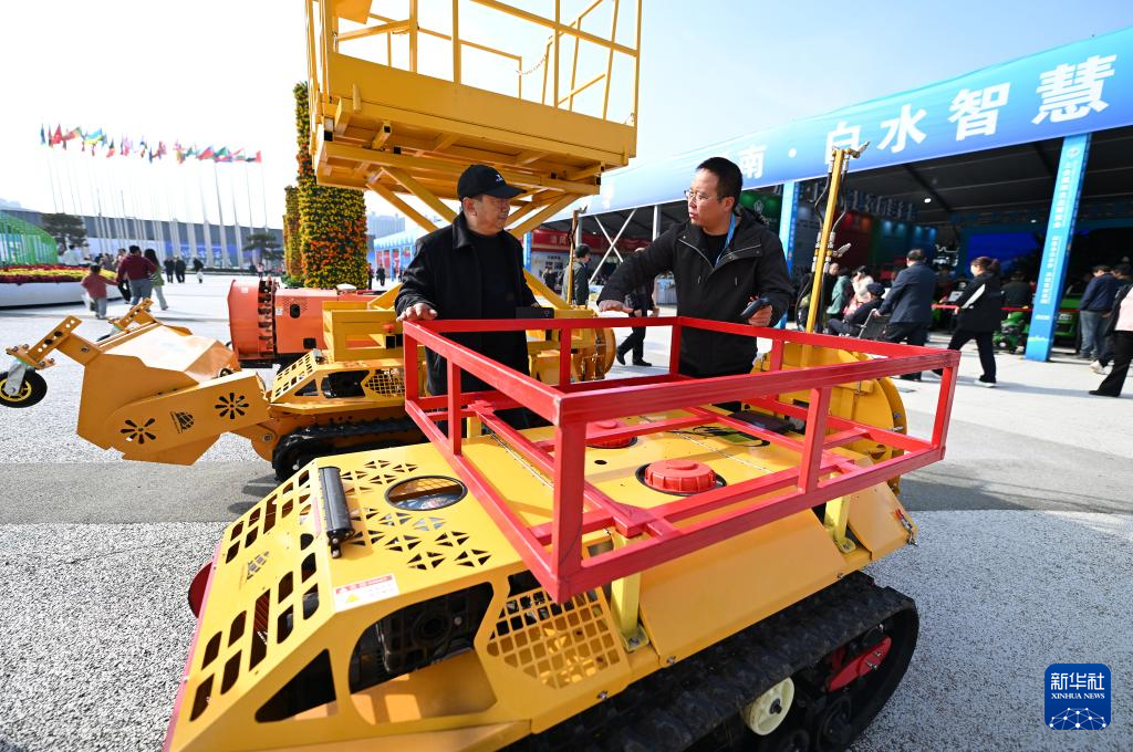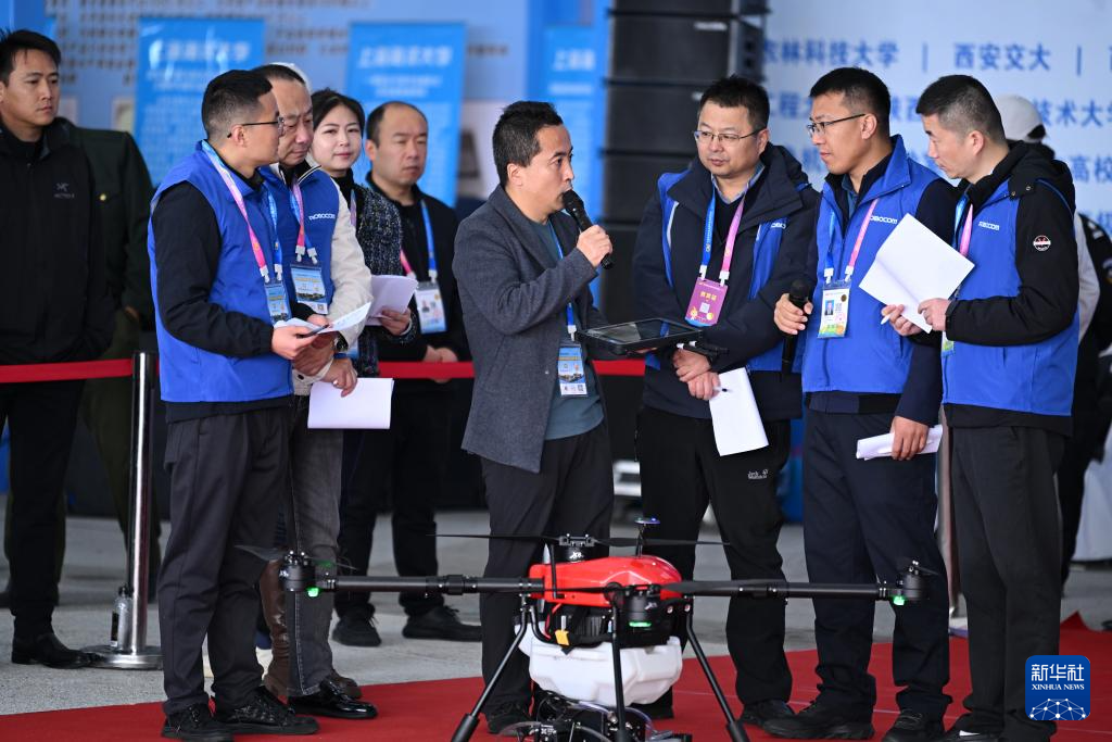 10月26日,在第32届杨凌农高会的农业机器人比赛上,陕西国防工业技师学院的选手介绍参赛的农用无人机。 近日,第32届中国杨凌农业高新科技成果博览会在陕西杨凌举行。博览会通过农业机器人比赛、智慧农机装备展等形式,汇聚来自全国各地的科研团队和创新企业,集中展示农业机器人领域的最新成果,这种“赛展结合”的模式,让杨凌农高会成为智慧农业创新成果的展示窗口和推广平台。 新华社记者 李一博 摄 10月26日,在第32届杨凌农高会的农业机器人比赛上,陕西华基枫林科技有限公司的技术人员(前中)向评委介绍参赛的农用无人机产品。 近日,第32届中国杨凌农业高新科技成果博览会在陕西杨凌举行。博览会通过农业机器人比赛、智慧农机装备展等形式,汇聚来自全国各地的科研团队和创新企业,集中展示农业机器人领域的最新成果,这种“赛展结合”的模式,让杨凌农高会成为智慧农业创新成果的展示窗口和推广平台。 新华社记者 李一博 摄 10月26日,参观者在第32届杨凌农高会上了解渭南君创飞科技有限公司的履带自走式风送喷雾机。 近日,第32届中国杨凌农业高新科技成果博览会在陕西杨凌举行。博览会通过农业机器人比赛、智慧农机装备展等形式,汇聚来自全国各地的科研团队和创新企业,集中展示农业机器人领域的最新成果,这种“赛展结合”的模式,让杨凌农高会成为智慧农业创新成果的展示窗口和推广平台。 新华社记者 李一博 摄 10月26日,参观者在第32届杨凌农高会上了解渭南君创飞科技有限公司的履带果园管理机。 近日,第32届中国杨凌农业高新科技成果博览会在陕西杨凌举行。博览会通过农业机器人比赛、智慧农机装备展等形式,汇聚来自全国各地的科研团队和创新企业,集中展示农业机器人领域的最新成果,这种“赛展结合”的模式,让杨凌农高会成为智慧农业创新成果的展示窗口和推广平台。 新华社记者 李一博 摄 10月26日,参观者在第32届杨凌农高会上了解鲁力农机的履带自走式多功能微耕机。 近日,第32届中国杨凌农业高新科技成果博览会在陕西杨凌举行。博览会通过农业机器人比赛、智慧农机装备展等形式,汇聚来自全国各地的科研团队和创新企业,集中展示农业机器人领域的最新成果,这种“赛展结合”的模式,让杨凌农高会成为智慧农业创新成果的展示窗口和推广平台。 新华社记者 李一博 摄 10月26日,渭南君创飞科技有限公司的履带自走式风送喷雾机在第32届杨凌农高会向参观者进行模拟演示。 近日,第32届中国杨凌农业高新科技成果博览会在陕西杨凌举行。博览会通过农业机器人比赛、智慧农机装备展等形式,汇聚来自全国各地的科研团队和创新企业,集中展示农业机器人领域的最新成果,这种“赛展结合”的模式,让杨凌农高会成为智慧农业创新成果的展示窗口和推广平台。 新华社记者 李一博 摄