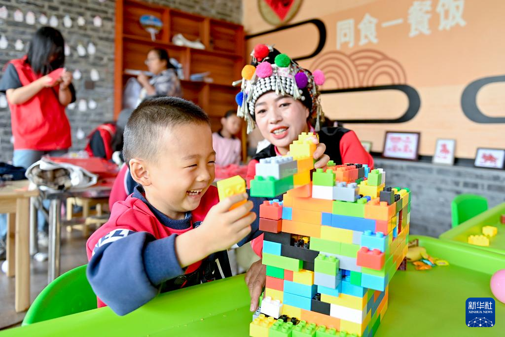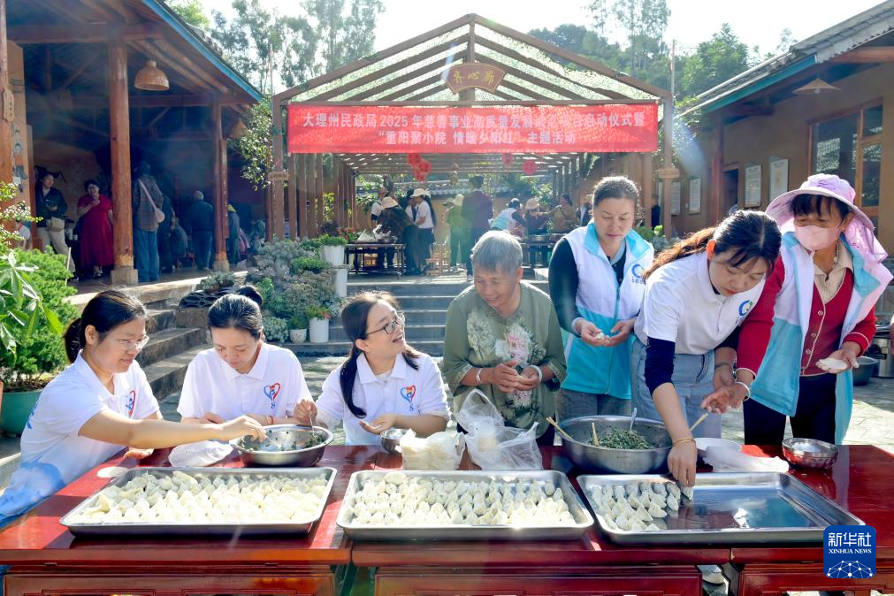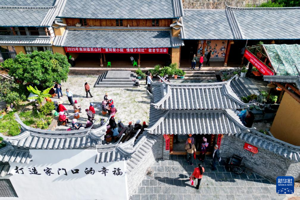 10月28日,小朋友在南涧县公郎镇公郎村幸福小院内为老人庆祝重阳节。 近年来,云南省大理白族自治州南涧彝族自治县针对农村“一老一小”群体的急难愁盼问题,创新“无量幸福小院”模式。 该模式采用“集体建院、分户居住、互助服务”机制,整合村组现有闲置资源、多元筹资,为留守老人和儿童提供老年助餐、日间照料、儿童托管等“一站式”服务。 截至目前,当地已建成“无量幸福小院”103个,进一步扩大了养老托育服务的有效供给,助力农村“一老一小”群体提升幸福感与归属感。 新华社发(适志宏 摄) 10月28日,小朋友在南涧县公郎镇公郎村幸福小院内为老人庆祝重阳节。 近年来,云南省大理白族自治州南涧彝族自治县针对农村“一老一小”群体的急难愁盼问题,创新“无量幸福小院”模式。 该模式采用“集体建院、分户居住、互助服务”机制,整合村组现有闲置资源、多元筹资,为留守老人和儿童提供老年助餐、日间照料、儿童托管等“一站式”服务。 截至目前,当地已建成“无量幸福小院”103个,进一步扩大了养老托育服务的有效供给,助力农村“一老一小”群体提升幸福感与归属感。 新华社发(适志宏 摄) 10月28日,老人在南涧县公郎镇自强村麦地平幸福小院庆祝重阳节(无人机照片)。 近年来,云南省大理白族自治州南涧彝族自治县针对农村“一老一小”群体的急难愁盼问题,创新“无量幸福小院”模式。 该模式采用“集体建院、分户居住、互助服务”机制,整合村组现有闲置资源、多元筹资,为留守老人和儿童提供老年助餐、日间照料、儿童托管等“一站式”服务。 截至目前,当地已建成“无量幸福小院”103个,进一步扩大了养老托育服务的有效供给,助力农村“一老一小”群体提升幸福感与归属感。 新华社发(适志宏 摄) 5月2日,小朋友在南涧县南涧镇西山村幸福小院内学习剪纸。 近年来,云南省大理白族自治州南涧彝族自治县针对农村“一老一小”群体的急难愁盼问题,创新“无量幸福小院”模式。 该模式采用“集体建院、分户居住、互助服务”机制,整合村组现有闲置资源、多元筹资,为留守老人和儿童提供老年助餐、日间照料、儿童托管等“一站式”服务。 截至目前,当地已建成“无量幸福小院”103个,进一步扩大了养老托育服务的有效供给,助力农村“一老一小”群体提升幸福感与归属感。 新华社发(适志宏 摄) 5月2日,小朋友在南涧县南涧镇西山村幸福小院内堆积木。 近年来,云南省大理白族自治州南涧彝族自治县针对农村“一老一小”群体的急难愁盼问题,创新“无量幸福小院”模式。 该模式采用“集体建院、分户居住、互助服务”机制,整合村组现有闲置资源、多元筹资,为留守老人和儿童提供老年助餐、日间照料、儿童托管等“一站式”服务。 截至目前,当地已建成“无量幸福小院”103个,进一步扩大了养老托育服务的有效供给,助力农村“一老一小”群体提升幸福感与归属感。 新华社发(适志宏 摄) 10月28日,村民在南涧县公郎镇自强村麦地平幸福小院为老人准备饭菜。 近年来,云南省大理白族自治州南涧彝族自治县针对农村“一老一小”群体的急难愁盼问题,创新“无量幸福小院”模式。 该模式采用“集体建院、分户居住、互助服务”机制,整合村组现有闲置资源、多元筹资,为留守老人和儿童提供老年助餐、日间照料、儿童托管等“一站式”服务。 截至目前,当地已建成“无量幸福小院”103个,进一步扩大了养老托育服务的有效供给,助力农村“一老一小”群体提升幸福感与归属感。 新华社发(适志宏 摄) 10月29日,志愿者在南涧县南涧镇西山村幸福小院内为老人包饺子。 近年来,云南省大理白族自治州南涧彝族自治县针对农村“一老一小”群体的急难愁盼问题,创新“无量幸福小院”模式。 该模式采用“集体建院、分户居住、互助服务”机制,整合村组现有闲置资源、多元筹资,为留守老人和儿童提供老年助餐、日间照料、儿童托管等“一站式”服务。 截至目前,当地已建成“无量幸福小院”103个,进一步扩大了养老托育服务的有效供给,助力农村“一老一小”群体提升幸福感与归属感。 新华社发(适志宏 摄) 10月29日,老人在南涧县南涧镇西山村幸福小院内准备参加重阳节活动(无人机照片)。 近年来,云南省大理白族自治州南涧彝族自治县针对农村“一老一小”群体的急难愁盼问题,创新“无量幸福小院”模式。 该模式采用“集体建院、分户居住、互助服务”机制,整合村组现有闲置资源、多元筹资,为留守老人和儿童提供老年助餐、日间照料、儿童托管等“一站式”服务。 截至目前,当地已建成“无量幸福小院”103个,进一步扩大了养老托育服务的有效供给,助力农村“一老一小”群体提升幸福感与归属感。 新华社发(适志宏 摄) 10月28日,医生在南涧县公郎镇自强村麦地平幸福小院为老人义诊。 近年来,云南省大理白族自治州南涧彝族自治县针对农村“一老一小”群体的急难愁盼问题,创新“无量幸福小院”模式。 该模式采用“集体建院、分户居住、互助服务”机制,整合村组现有闲置资源、多元筹资,为留守老人和儿童提供老年助餐、日间照料、儿童托管等“一站式”服务。 截至目前,当地已建成“无量幸福小院”103个,进一步扩大了养老托育服务的有效供给,助力农村“一老一小”群体提升