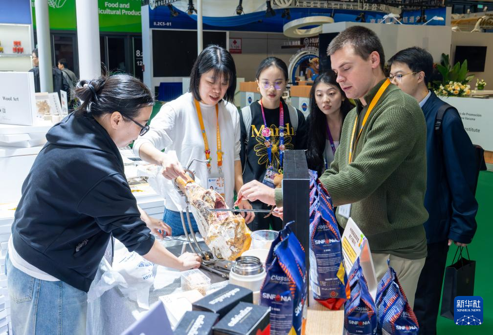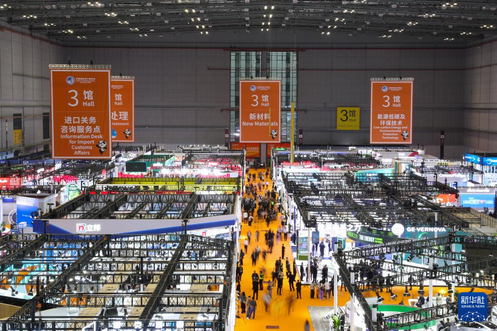 11月5日,人们从第八届进博会主题装饰前走过。 11月5日,第八届中国国际进口博览会在国家会展中心(上海)开幕。本届进博会有155个国家、地区和国际组织参与,4108家境外企业参展,展览面积超过43万平方米,展览面积和企业总数均创历史新高。 新华社记者 任鹏飞 摄 11月5日,人们在第八届进博会举办地国家会展中心(上海)拍照留影。 11月5日,第八届中国国际进口博览会在国家会展中心(上海)开幕。本届进博会有155个国家、地区和国际组织参与,4108家境外企业参展,展览面积超过43万平方米,展览面积和企业总数均创历史新高。 新华社记者 鲁鹏 摄 11月5日,观众在第八届进博会技术装备展区三菱电机展台了解AI外观检测产线。 11月5日,第八届中国国际进口博览会在国家会展中心(上海)开幕。本届进博会有155个国家、地区和国际组织参与,4108家境外企业参展,展览面积超过43万平方米,展览面积和企业总数均创历史新高。 新华社记者 王婧嫱 摄 11月5日,观众在第八届进博会农食产品展区大商集团展台品尝进口火腿。 11月5日,第八届中国国际进口博览会在国家会展中心(上海)开幕。本届进博会有155个国家、地区和国际组织参与,4108家境外企业参展,展览面积超过43万平方米,展览面积和企业总数均创历史新高。 新华社记者 陈浩明 摄 这是11月5日拍摄的第八届进博会技术装备展区。 11月5日,第八届中国国际进口博览会在国家会展中心(上海)开幕。本届进博会有155个国家、地区和国际组织参与,4108家境外企业参展,展览面积超过43万平方米,展览面积和企业总数均创历史新高。 新华社记者 王婧嫱 摄 这是11月5日在第八届进博会技术装备展区立邦展台拍摄的“低空飞行全域涂装解决方案”展示。 11月5日,第八届中国国际进口博览会在国家会展中心(上海)开幕。本届进博会有155个国家、地区和国际组织参与,4108家境外企业参展,展览面积超过43万平方米,展览面积和企业总数均创历史新高。 新华社记者 王婧嫱 摄 11月5日,主播在第八届进博会医疗器械及医药保健展区直播。 11月5日,第八届中国国际进口博览会在国家会展中心(上海)开幕。本届进博会有155个国家、地区和国际组织参与,4108家境外企业参展,展览面积超过43万平方米,展览面积和企业总数均创历史新高。 新华社记者 王婧嫱 摄 11月5日,主播在第八届进博会医疗器械及医药保健展区直播。 11月5日,第八届中国国际进口博览会在国家会展中心(上海)开幕。本届进博会有155个国家、地区和国际组织参与,4108家境外企业参展,展览面积超过43万平方米,展览面积和企业总数均创历史新高。 新华社记者 王婧嫱 摄 11月5日,在第八届进博会农食产品展区,参展商(左)为观众介绍口腔护理产品。 11月5日,第八届中国国际进口博览会在国家会展中心(上海)开幕。本届进博会有155个国家、地区和国际组织参与,4108家境外企业参展,展览面积超过43万平方米,展览面积和企业总数均创历史新高。 新华社记者 陈浩明 摄 11月5日,观众在第八届进博会消费品展区品尝斯里兰卡红茶。 11月5日,第八届中国国际进口博览会在国家会展中心(上海)开幕。本届进博会有155个国家、地区和国际组织参与,4108家境外企业参展,展览面积超过43万平方米,展览面积和企业总数均创历史新高。 新华社记者 鲁鹏 摄 这是11月5日拍摄的第八届进博会国家展伊朗馆。 11月5日,第八届中国国际进口博览会在国家会展中心(上海)开幕。本届进博会有155个国家、地区和国际组织参与,4108家境外企业参展,展览面积超过43万平方米,展览面积和企业总数均创历史新高。 新华社记者 田薇薇 摄 11月5日,人们在第八届进博会国家展上品尝特色美食。 11月5日,第八届中国国际进口博览会在国家会展中心(上海)开幕。本届进博会有155个国家、地区和国际组织参与,4108家境外企业参展,展览面积超过43万平方米,展览面积和企业总数均创历史新高。 新华社记者 陈浩明 摄 这是11月5日在第八届进博会消费品展区拍摄的来自伊朗的陶瓷制品。 11月5日,第八届中国国际进口博览会在国家会展中心(上海)开幕。本届进博会有155个国家、地区和国际组织参与,4108家境外企业参展,展览面积超过43万平方米,展览面积和企业总数均创历史新高。 新华社记者 鲁鹏 摄 这是11月5日在第八届进博会消费品展区拍摄的来自捷克的水晶杯。 11月5日,第八届中国国际进口博览会在国家会展中心(上海)开幕。本届进博会有155个国家、地区和国际组织参与,4108家境外企业参展,展览面积超过43万平方米,展览面积和企业总数均创历史新高。 新华社记者 鲁鹏 摄 11月5日,工作人员在第八届进博会技术装备展区展示一款工业场景人形机器人。 11月5日,第八届中国国际进口博览会在国家会展中心(上海)开幕。本届进博会有155个国家、地区和国际组织参与,4108家境外企业参展,展览面积超过43万平方米,展览面积和企业总数均创历史新高。 新华社记者 王婧嫱 摄 11月5日,观众在第八届进博会消费品展区VMUSE珠宝展台参观。 11月5日,第八届中国国际进口博览会在国家会展中心(上海)开幕。本届进博会有155个国家、地区和国际组织参与,4108家境外企业参展,展览面积超过43万平方米,展览面积和企业总数均创历史新高。 新华社记者 陈浩明 摄 11月5日,在第八届进博会国家展斯洛伐克馆,参展商(左二)在向嘉宾(左一)介绍一款