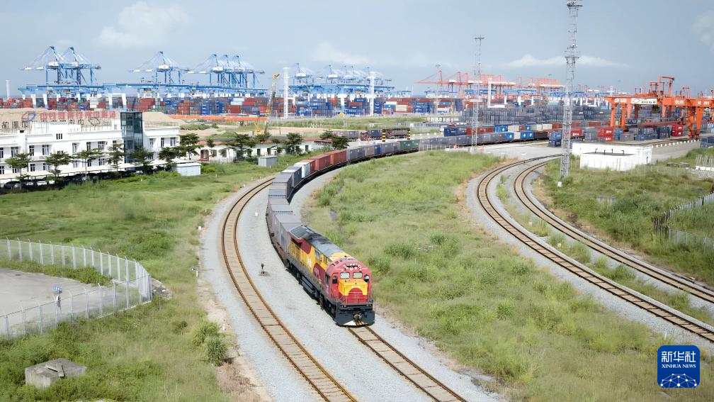 这是广西钦州港集装箱储放地(11月5日摄,无人机照片)。 截至11月5日,西部陆海新通道班列今年已累计运输货物突破120万标箱,达121.4万标箱,同比增幅63.2%。“十四五”以来,西部陆海新通道班列已累计发送集装箱货物444.1万标箱,成为连接中国西部地区与东盟国家,推动区域协调发展、深化对外开放的重要物流通道。 新华社记者 张爱林 摄 夜幕下的广西钦州港(11月5日摄,无人机照片)。 截至11月5日,西部陆海新通道班列今年已累计运输货物突破120万标箱,达121.4万标箱,同比增幅63.2%。“十四五”以来,西部陆海新通道班列已累计发送集装箱货物444.1万标箱,成为连接中国西部地区与东盟国家,推动区域协调发展、深化对外开放的重要物流通道。 新华社记者 张爱林 摄 满载集装箱的班列驶离广西钦州铁路集装箱中心站(9月19日摄,无人机照片)。 截至11月5日,西部陆海新通道班列今年已累计运输货物突破120万标箱,达121.4万标箱,同比增幅63.2%。“十四五”以来,西部陆海新通道班列已累计发送集装箱货物444.1万标箱,成为连接中国西部地区与东盟国家,推动区域协调发展、深化对外开放的重要物流通道。 新华社记者 张爱林 摄 满载集装箱的班列驶向广西钦州港东站(9月19日摄,无人机照片)。 截至11月5日,西部陆海新通道班列今年已累计运输货物突破120万标箱,达121.4万标箱,同比增幅63.2%。“十四五”以来,西部陆海新通道班列已累计发送集装箱货物444.1万标箱,成为连接中国西部地区与东盟国家,推动区域协调发展、深化对外开放的重要物流通道。 新华社记者 张爱林 摄