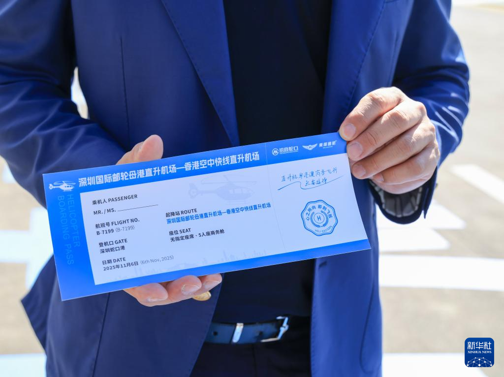 11月6日,从澳门国际机场起飞的直升机飞抵深圳国际邮轮母港直升机停机坪。 11月6日,深圳国际邮轮母港正式启用跨境直升机出入境功能。两架次跨境直升机搭载着首批乘客,先后完成从澳门国际机场至蛇口、从蛇口至香港信德直升机场的飞行。 两条航线正式运营后,深圳蛇口至香港岛、澳门的在途交通时间将分别缩短至20分钟和15分钟以内,粤港澳大湾区“30分钟高效交通圈”从蓝图变为现实,将为区域深度融合与口岸经济、低空经济发展注入强劲动能。 新华社记者 毛思倩 摄 11月6日,乘客在深圳国际邮轮母港展示自己的直升机票。 11月6日,深圳国际邮轮母港正式启用跨境直升机出入境功能。两架次跨境直升机搭载着首批乘客,先后完成从澳门国际机场至蛇口、从蛇口至香港信德直升机场的飞行。 两条航线正式运营后,深圳蛇口至香港岛、澳门的在途交通时间将分别缩短至20分钟和15分钟以内,粤港澳大湾区“30分钟高效交通圈”从蓝图变为现实,将为区域深度融合与口岸经济、低空经济发展注入强劲动能。 新华社记者 毛思倩 摄 11月6日,在深圳国际邮轮母港,工作人员对直升机和人员进行查验。 11月6日,深圳国际邮轮母港正式启用跨境直升机出入境功能。两架次跨境直升机搭载着首批乘客,先后完成从澳门国际机场至蛇口、从蛇口至香港信德直升机场的飞行。 两条航线正式运营后,深圳蛇口至香港岛、澳门的在途交通时间将分别缩短至20分钟和15分钟以内,粤港澳大湾区“30分钟高效交通圈”从蓝图变为现实,将为区域深度融合与口岸经济、低空经济发展注入强劲动能。 新华社记者 毛思倩 摄