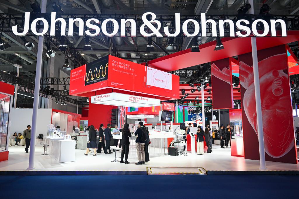 11月7日,观众在医疗器械及医药保健展区强生展台参观。强生是进博会八届“全勤生”。新华社记者陈浩明摄