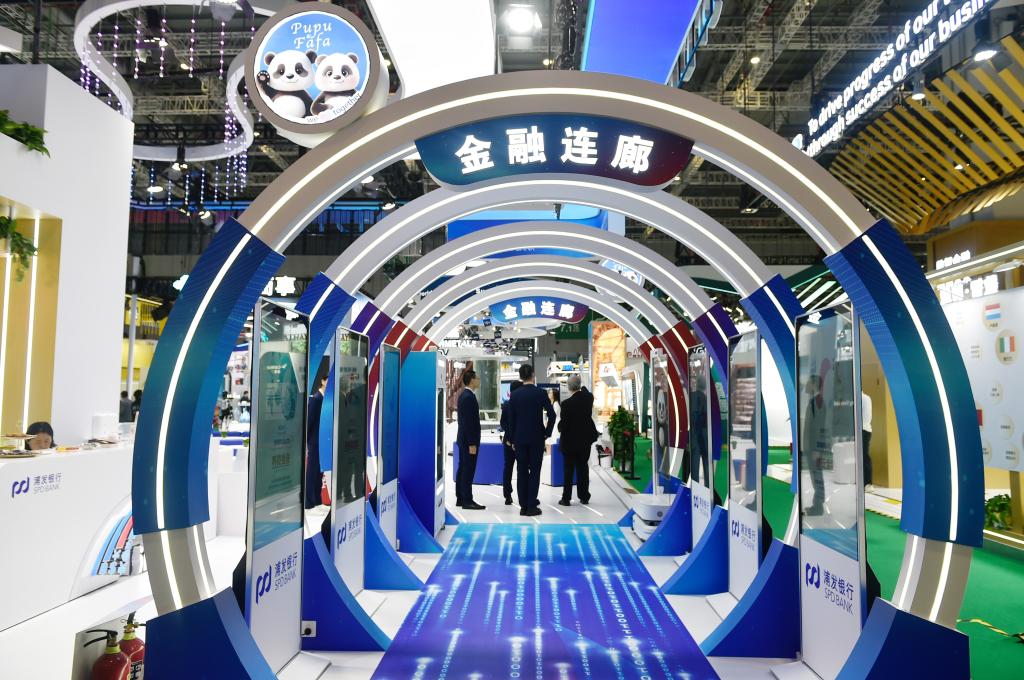 11月9日拍摄的第八届进博会服务贸易展区的一处展位。新华社记者鲁鹏摄