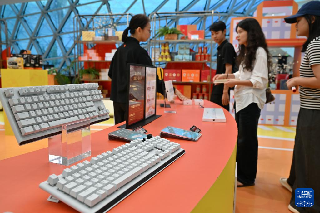 11月9日,顾客在三亚国际免税城选购数码配件。这是新增免税品类。