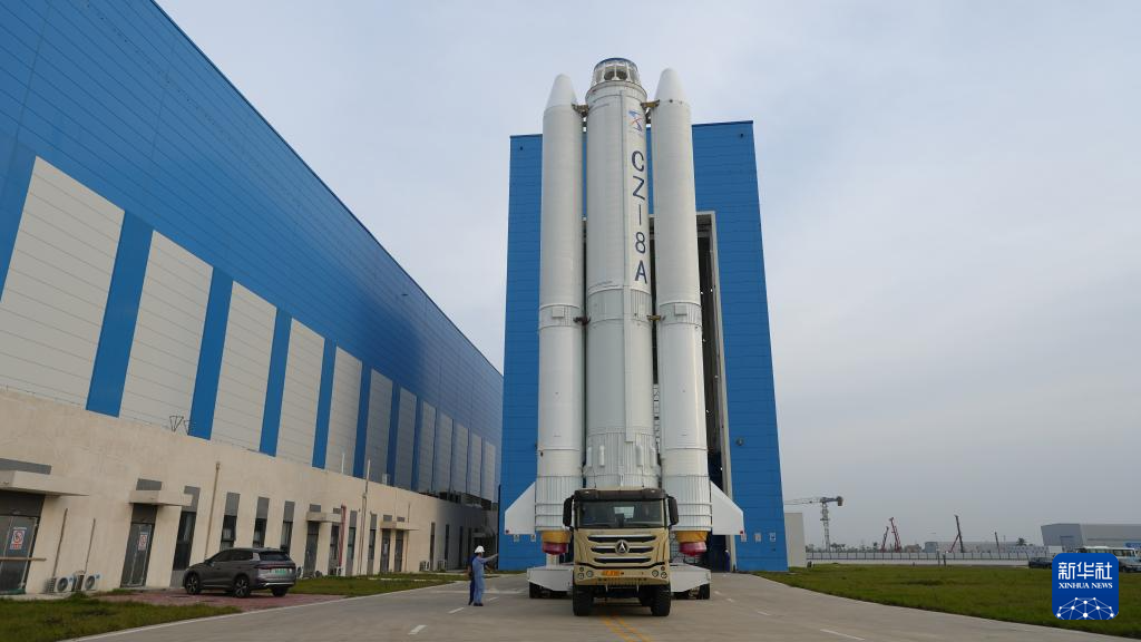 11月11日,长八甲遥五火箭箭体被运出测试厂房。