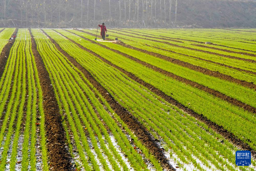11月11日,农民驾驶农机在河南省焦作市温县黄河滩区播种小麦。 据农业农村部农情调度,截至11月10日,全国冬小麦播种近七成。 新华社发(黄福兴摄) 11月11日,河北省遵化市东新庄镇农民给冬小麦浇水。 据农业农村部农情调度,截至11月10日,全国冬小麦播种近七成。 新华社发(刘满仓摄) 11月11日,江苏省兴化市陈堡镇宁乡村农民驾驶农机耕地,为冬小麦播种做准备(无人机照片)。 据农业农村部农情调度,截至11月10日,全国冬小麦播种近七成。 新华社发(周社根 摄) 11月11日,河南省焦作市温县黄庄镇常庄村村民驾驶播种机在田间播种小麦(无人机照片)。 据农业农村部农情调度,截至11月10日,全国冬小麦播种近七成。 新华社发(徐宏星 摄) 11月10日,在甘肃省平凉市静宁县三合乡前咀村,农民在覆膜后的冬小麦田里劳作。 据农业农村部农情调度,截至11月10日,全国冬小麦播种近七成。 新华社发(王毅摄)