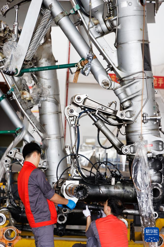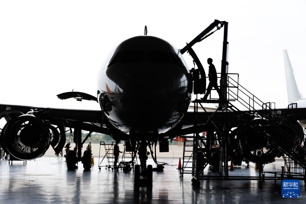 12月9日,工作人员在海南自贸港一站式飞机维修产业基地维修飞机。