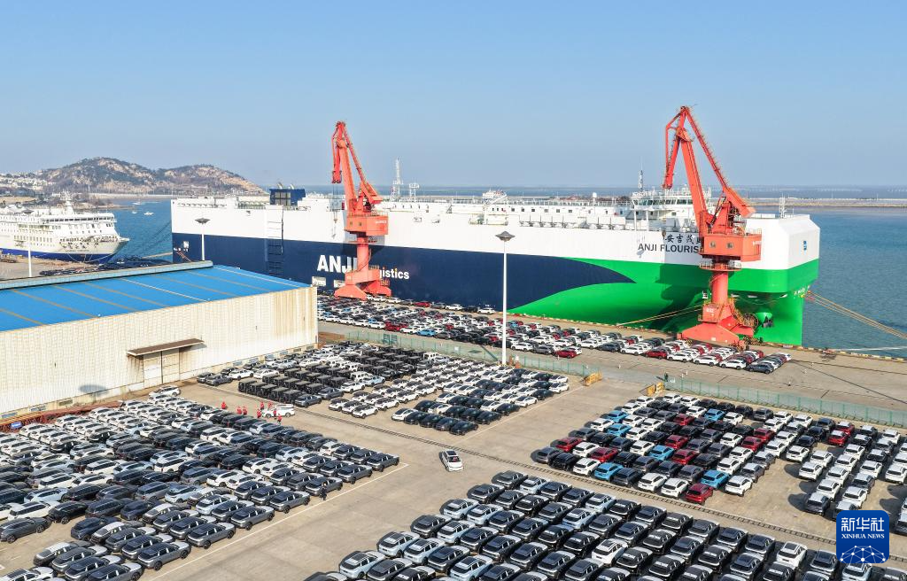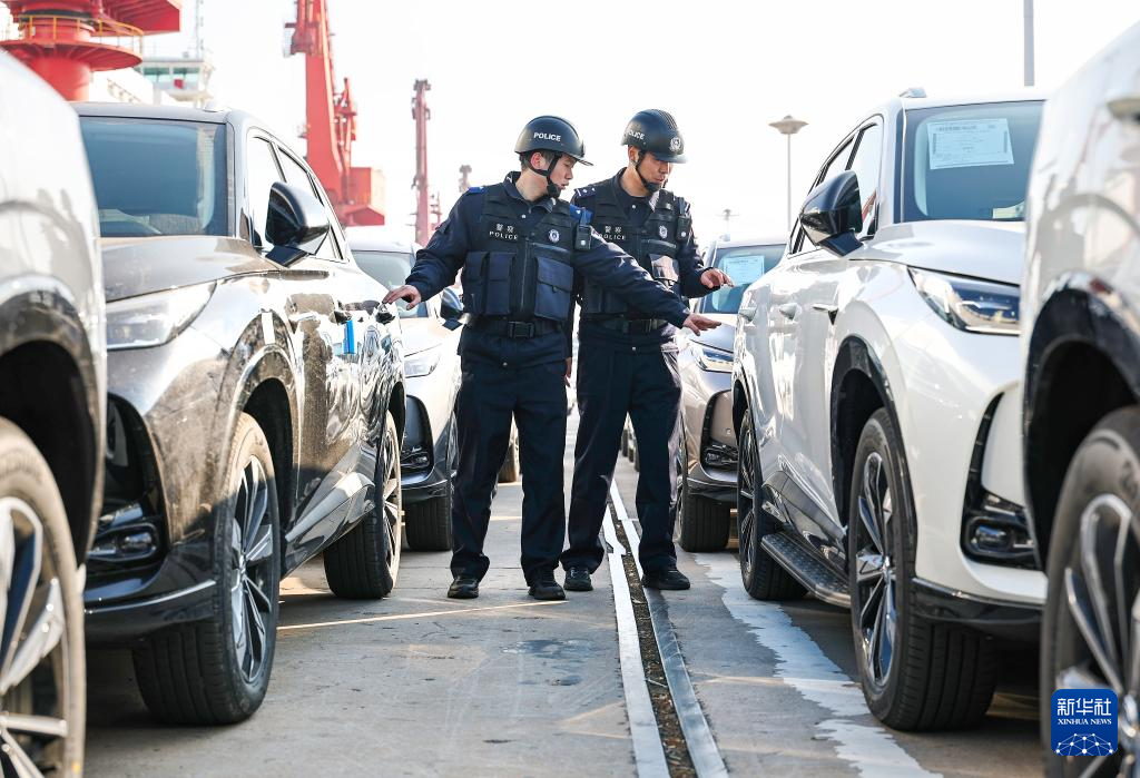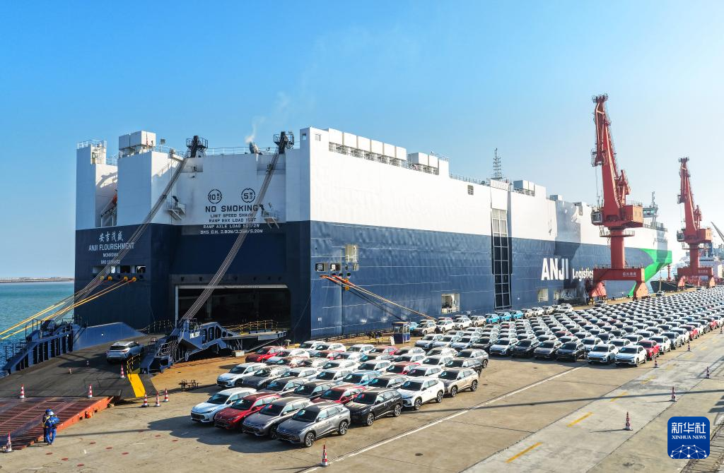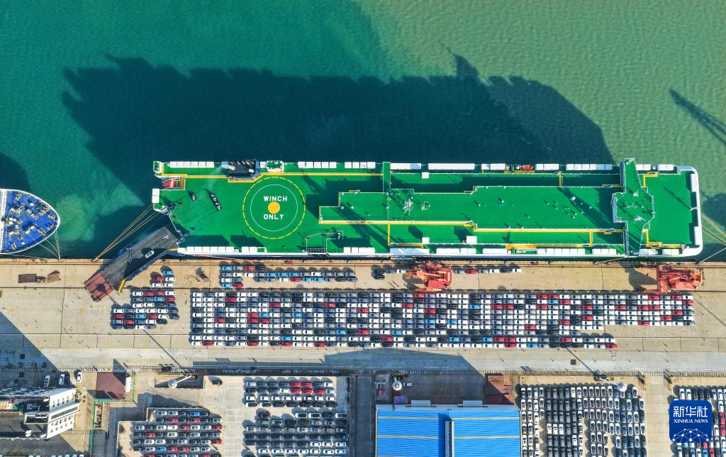 12月17日,在江苏连云港港,一艘滚装船在装运出口汽车(无人机照片)。 今年以来,江苏连云港港优化新能源汽车出口全流程通道,助力新能源汽车“加速出海”。据统计,今年1至11月连云港港新能源汽车出口量4.48万台,同比增长83.06%。 新华社发(王健民摄) 12月17日,在江苏连云港港,一艘滚装船在装运出口汽车(无人机照片)。 今年以来,江苏连云港港优化新能源汽车出口全流程通道,助力新能源汽车“加速出海”。据统计,今年1至11月连云港港新能源汽车出口量4.48万台,同比增长83.06%。 新华社发(王健民摄) 12月17日拍摄的江苏连云港港出口汽车堆场(无人机照片)。 今年以来,江苏连云港港优化新能源汽车出口全流程通道,助力新能源汽车“加速出海”。据统计,今年1至11月连云港港新能源汽车出口量4.48万台,同比增长83.06%。 新华社发(王健民摄) 12月17日,在江苏连云港港,连云港边检站民警对即将出口的汽车进行检查。 今年以来,江苏连云港港优化新能源汽车出口全流程通道,助力新能源汽车“加速出海”。据统计,今年1至11月连云港港新能源汽车出口量4.48万台,同比增长83.06%。 新华社发(王健民摄) 12月17日,在江苏连云港港,一艘滚装船在装运出口汽车(无人机照片)。 今年以来,江苏连云港港优化新能源汽车出口全流程通道,助力新能源汽车“加速出海”。据统计,今年1至11月连云港港新能源汽车出口量4.48万台,同比增长83.06%。 新华社发(王健民摄)