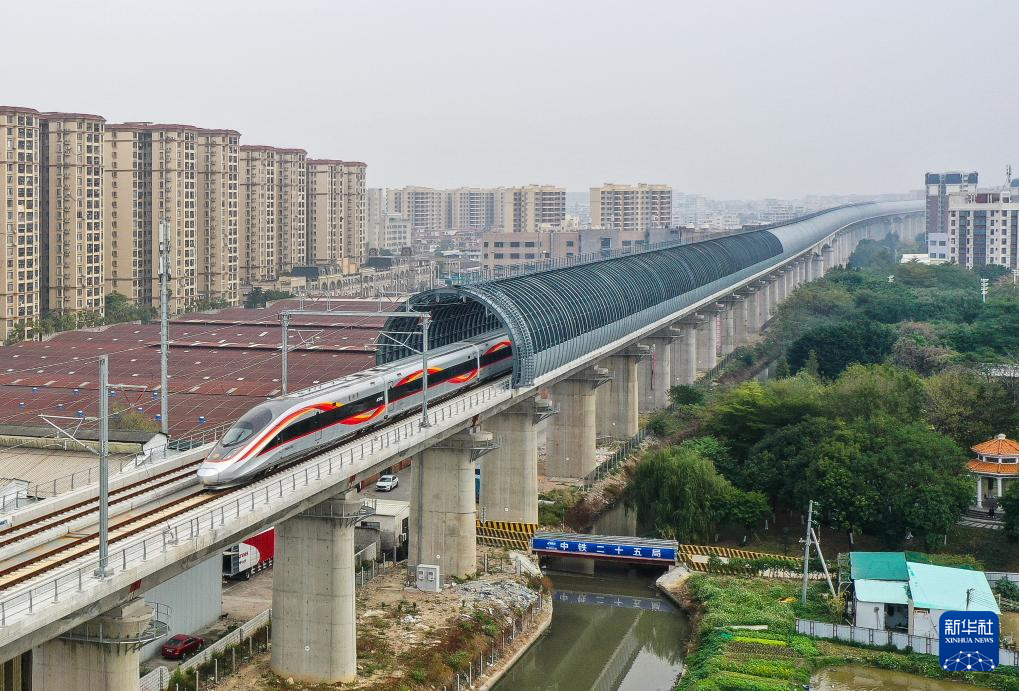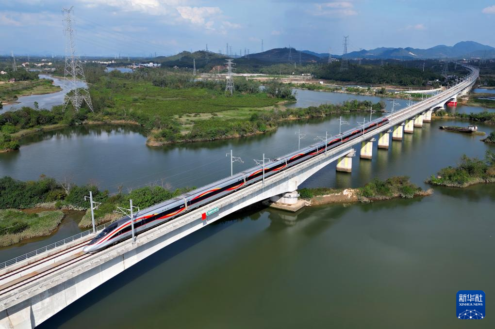 大湾区携手北部湾!12月22日10时许,随着G9785次“复兴号”列车从广州白云站启程,一路向着南海之滨的湛江疾驰而去,标志着广湛高铁正式开通运营。广州白云站至湛江北站最快1小时32分可达,北部湾城市群与粤港澳大湾区时空距离大幅压缩。 12月22日,从湛江北站开往广州白云站的列车驶过丰头河特大桥。新华社发(魏婕摄) 首发列车上,常年奔波于广湛两地的陈先生难掩激动。以往耗时三四个小时的旅途,如今最快约一个半小时即可抵达。12306平台显示,开通首日,广湛高铁车票短时间内即告售罄。 广湛高铁连接广州、佛山、肇庆、云浮、阳江、茂名、湛江等地市,设计时速350公里,正线全长约401公里。自开工建设以来,国铁集团组织各参建单位强化安全、质量和环保控制,建成了珠江四线特大桥等桥梁工程和湛江湾铁路海底隧道等隧道工程,为项目开通运营打下了坚实基础。 引人关注的湛江湾铁路海底隧道全长9640米,列车穿越隧道仅需约3分钟。其中隧道盾构段长7551米,穿越湛江湾海底和湛江城区,是我国已建成独头掘进距离最长的穿海高铁盾构隧道。建设团队应用盾构智能化管理系统,对工程进度、安全、质量实施全面信息化管控,克服长距离穿越复杂海底地层、刀具磨损严重等技术难题,历时33个月实现盾构隧道贯通,沉降控制达毫米级。 在路网布局上,广湛高铁枢纽价值尤为凸显:线路东联广州全国性铁路枢纽,经京广高铁辐射华中、华北;西接湛江枢纽,未来通过合湛、湛海高铁,直通广西沿海与海南岛。 12月22日,搭乘从广州白云站开往湛江北站首发列车的旅客与工作人员在广州白云站合影。新华社记者 卢汉欣 摄 “广湛高铁开通后,未来再联通合湛高铁和湛海高铁,我国沿海高铁大动脉将实现从长三角到北部湾的全线贯通,使粤港澳大湾区、北部湾城市群和海南自由贸易港三大区域联系更紧密,构筑起区域协调发展的‘黄金走廊’。”国铁广州局客运部总工程师彭翔说。 对粤西地区而言,这条高铁具有划时代的意义。线路通车运营后,阳江、茂名、湛江三市结束不通时速350公里高铁的历史,标志着广东向着“市市通350高铁”目标迈出坚实一步,将进一步完善区域路网布局,助力发挥粤港澳大湾区辐射带动作用,促进区域经济社会高质量发展。 12月22日,从广州白云站开往湛江北站的列车穿过高中立交特大桥“隔音隧道”。新华社发(李佳珊摄) 12月22日,搭乘从广州白云站开往湛江北站首发列车的旅客在广州白云站留影。新华社记者 卢汉欣 摄 12月22日,搭乘从广州白云站开往湛江北站首发列车的旅客陆续上车。新华社记者 卢汉欣 摄 策划:陈芳 记者:樊曦、毛鑫 统筹:谢良、肖思思、聂焱 新华社国内部出品