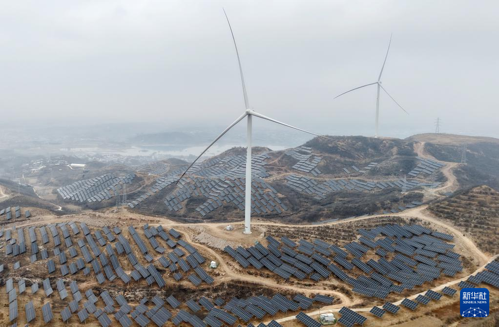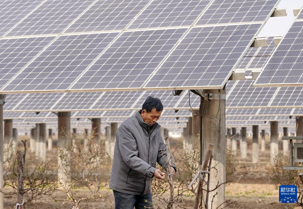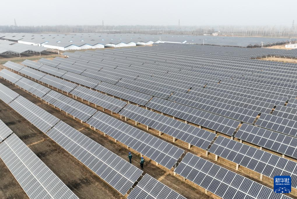1月17日拍摄的河北省赞皇县院头镇曹家庄村附近的“风光互补”发电场(无人机照片)。 近年来,河北省大力推动清洁能源开发利用,根据地域特点有序推进风电、分布式光伏、集中式光伏及“渔光互补”“农光互补”等新能源项目建设,助力绿色低碳发展。据国网河北省电力公司介绍,截至2025年底,该省风电和光伏发电装机并网容量达到13303万千瓦,占统调装机容量的68%。 新华社记者 杨世尧 摄 1月16日,国网巨鹿县供电公司的工人在辖区阎疃镇附近的“农光互补”光伏发电场巡检并网线路。 近年来,河北省大力推动清洁能源开发利用,根据地域特点有序推进风电、分布式光伏、集中式光伏及“渔光互补”“农光互补”等新能源项目建设,助力绿色低碳发展。据国网河北省电力公司介绍,截至2025年底,该省风电和光伏发电装机并网容量达到13303万千瓦,占统调装机容量的68%。 新华社记者 杨世尧 摄 1月16日,国网巨鹿县供电公司的工人在辖区阎疃镇附近的“农光互补”光伏发电场巡检并网线路(无人机照片)。 近年来,河北省大力推动清洁能源开发利用,根据地域特点有序推进风电、分布式光伏、集中式光伏及“渔光互补”“农光互补”等新能源项目建设,助力绿色低碳发展。据国网河北省电力公司介绍,截至2025年底,该省风电和光伏发电装机并网容量达到13303万千瓦,占统调装机容量的68%。 新华社记者 杨世尧 摄 1月17日,国网赞皇县供电公司的工人在辖区院头镇曹家庄村附近的“风光互补”发电场巡检并网线路。 近年来,河北省大力推动清洁能源开发利用,根据地域特点有序推进风电、分布式光伏、集中式光伏及“渔光互补”“农光互补”等新能源项目建设,助力绿色低碳发展。据国网河北省电力公司介绍,截至2025年底,该省风电和光伏发电装机并网容量达到13303万千瓦,占统调装机容量的68%。 新华社记者 杨世尧 摄 1月16日,河北省巨鹿县阎疃镇的一名农民在“农光互补”光伏板下管护金银花苗。 近年来,河北省大力推动清洁能源开发利用,根据地域特点有序推进风电、分布式光伏、集中式光伏及“渔光互补”“农光互补”等新能源项目建设,助力绿色低碳发展。据国网河北省电力公司介绍,截至2025年底,该省风电和光伏发电装机并网容量达到13303万千瓦,占统调装机容量的68%。 新华社记者 杨世尧 摄
