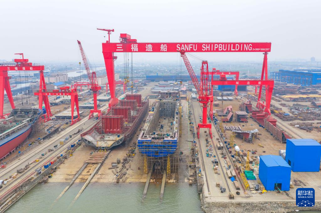 2026年2月2日在江苏省南通市崇川区船舶海工产业带拍摄的建造中的船舶(无人机照片)。 工业和信息化部2月1日发布数据显示,2025年,我国造船三大指标国际市场份额连续16年保持全球领先。 数据显示,2025年,我国造船完工量5369万载重吨,同比增长11.4%,占世界总量的56.1%;新接订单量10782万载重吨,占世界总量的69.0%;截至2025年12月底,手持订单量27442万载重吨,同比增长31.5%,占世界总量的66.8%。 新华社发(许丛军摄) 2026年2月2日,在江苏省泰州市高港区的泰州三福船舶工程有限公司生产基地,多艘大型船舶在建造中(无人机照片)。 工业和信息化部2月1日发布数据显示,2025年,我国造船三大指标国际市场份额连续16年保持全球领先。 数据显示,2025年,我国造船完工量5369万载重吨,同比增长11.4%,占世界总量的56.1%;新接订单量10782万载重吨,占世界总量的69.0%;截至2025年12月底,手持订单量27442万载重吨,同比增长31.5%,占世界总量的66.8%。 新华社发(周社根摄) 2026年2月2日,在位于江苏省泰州市高港区的泰州三福船舶工程有限公司生产基地,大型船舶在建造中(无人机照片)。 工业和信息化部2月1日发布数据显示,2025年,我国造船三大指标国际市场份额连续16年保持全球领先。 数据显示,2025年,我国造船完工量5369万载重吨,同比增长11.4%,占世界总量的56.1%;新接订单量10782万载重吨,占世界总量的69.0%;截至2025年12月底,手持订单量27442万载重吨,同比增长31.5%,占世界总量的66.8%。 新华社发(周社根摄) 2026年1月28日,在山东省荣成市石岛管理区海工装备产业基地,船舶在修造中(无人机照片)。 工业和信息化部2月1日发布数据显示,2025年,我国造船三大指标国际市场份额连续16年保持全球领先。 数据显示,2025年,我国造船完工量5369万载重吨,同比增长11.4%,占世界总量的56.1%;新接订单量10782万载重吨,占世界总量的69.0%;截至2025年12月底,手持订单量27442万载重吨,同比增长31.5%,占世界总量的66.8%。 新华社发(李信君摄) 2026年1月13日拍摄的江苏省扬州中远海运重工有限公司厂区生产场景(无人机照片)。 工业和信息化部2月1日发布数据显示,2025年,我国造船三大指标国际市场份额连续16年保持全球领先。 数据显示,2025年,我国造船完工量5369万载重吨,同比增长11.4%,占世界总量的56.1%;新接订单量10782万载重吨,占世界总量的69.0%;截至2025年12月底,手持订单量27442万载重吨,同比增长31.5%,占世界总量的66.8%。 新华社发(孟德龙摄) 2026年1月6日,在浙江省临海市涌泉镇一家船舶修造企业,工人们开足马力赶订单(无人机照片)。 工业和信息化部2月1日发布数据显示,2025年,我国造船三大指标国际市场份额连续16年保持全球领先。 数据显示,2025年,我国造船完工量5369万载重吨,同比增长11.4%,占世界总量的56.1%;新接订单量10782万载重吨,占世界总量的69.0%;截至2025年12月底,手持订单量27442万载重吨,同比增长31.5%,占世界总量的66.8%。 新华社发(王华斌摄) 2026年1月5日,在位于江苏泰州口岸船舶有限公司厂区内,工人进行焊接作业。 工业和信息化部2月1日发布数据显示,2025年,我国造船三大指标国际市场份额连续16年保持全球领先。 数据显示,2025年,我国造船完工量5369万载重吨,同比增长11.4%,占世界总量的56.1%;新接订单量10782万载重吨,占世界总量的69.0%;截至2025年12月底,手持订单量27442万载重吨,同比增长31.5%,占世界总量的66.8%。 新华社发(杨玉岗摄) 这是2026年1月4日拍摄的江苏省南京市招商工业南京金陵船厂(无人机照片)。 工业和信息化部2月1日发布数据显示,2025年,我国造船三大指标国际市场份额连续16年保持全球领先。 数据显示,2025年,我国造船完工量5369万载重吨,同比增长11.4%,占世界总量的56.1%;新接订单量10782万载重吨,占世界总量的69.0%;截至2025年12月底,手持订单量27442万载重吨,同比增长31.5%,占世界总量的66.8%。 新华社发(刘建华摄) 2026年1月3日拍摄的江西省九江市都昌县造船总厂船舶制造现场(无人机照片)。 工业和信息化部2月1日发布数据显示,2025年,我国造船三大指标国际市场份额连续16年保持全球领先。 数据显示,2025年,我国造船完工量5369万载重吨,同比增长11.4%,占世界总量的56.1%;新接订单量10782万载重吨,占世界总量的69.0%;截至2025年12月底,手持订单量27442万载重吨,同比增长31.5%,占世界总量的66.8%。 新华社发(傅建斌摄) 2026年1月3日,在江西省九江市都昌县造船总厂船舶制造工地,工人进行刷漆作业。 工业和信息化部2月1日发布数据显示,2025年,我国造船三大指标国际市场份额连续16年保持全球领先。 数据显示,2025年,我国造船完工量5369万载重吨,同比增长11.4%,占世界总量的56.1%;新接订单量10782万载重吨,占世界总量的69.0%;截至2025年12月底,手持订单量27442万载重吨,同比增长31.5%,占世界总量的66.8%。 新华社发(傅建斌摄) 2026年1月2日,在江苏省南通市崇川区,由南通中远海运船务承修的希腊一艘船舶圆满完成所有既定工程,较合同船期提前扬帆出海(无人机照片)。 工业和信息化部2月1日发布数据显示,2025年,我国造船三大指标国际市场份额连续16年保持全球领先。 数据显示,2025年,我国造船完工量5369万载重吨,同比增长11.4%,占世界总量的56.1%;新接订单量10782万载重吨,占世界总量的69.0%;截至2025年12月底,手持订单量27442万载重吨,同比增长31.5%,占世界总量的66.8%。 新华社发(许丛军摄) 2025年12月31日,由南通中远海运川崎建造的超大型24000标