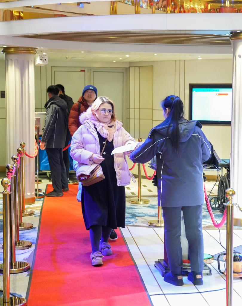 “放寒假了,想带上孩子,我们一家五口人来体验‘爱达·魔都号’,没想到今天这么幸运。”来自上海的李琳女士2月8日成为爱达邮轮的第100万名旅客。今年春运,邮轮经济吹来一阵新风,为旅客带来融合文旅和交通的新鲜出行体验。 来自上海的李琳女士2月8日成为爱达邮轮的第100万名旅客。新华社记者丁汀 摄 据上海海事局介绍,今年春运期间,上海水上客运总量预计超410万人次,其中邮轮、夜游航线等水上旅游产品的需求明显增多。爱达邮轮旗下运营3艘大型邮轮,其中首艘国产大型邮轮“爱达·魔都号”自2024年1月1日开启商业首航后,已服务约67万名旅客。今年春节期间,“爱达·魔都号”将于2月16日从上海出发,推出马年新春主题航次,带领宾客到访韩国。目前,春节航次的家庭房、阳台房等热门房型已基本售罄。 走进“爱达·魔都号”,邮轮已经换上了红红火火的春节装饰,除了精心准备的海上特色团圆宴外,马年新春主题航次还安排了写春联、剪纸、非遗手作等文化体验,配合海上升旗仪式、“五福”快闪、民俗讲堂等活动,让旅客感受仪式感十足的海上中国年。 “我们去年以‘邮轮+文化’的品牌策略推出了不同的主题航季。进入2026年,我们将开启‘爱达服务年’,提升邮轮经济‘吃喝玩乐游购娱’的丰富体验,将融合传统文化、在地文化和潮流文化,联手更多国民级的文化IP,为客人带来更沉浸和高互动的文旅体验。”爱达邮轮市场营销与电子商务助理副总裁贾璎说。 这是2月8日停靠在上海的“爱达·魔都号”邮轮。新华社记者丁汀 摄 根据上海海关统计,2025年上海港全年累计进出境邮轮544艘次,比2024年增长17.5%;经上海港乘坐邮轮进出境旅客185.7万人次,比2024年增长35.1%。展望2026年,“爱达·魔都号”计划运营80余个航次,主要以上海为母港,并有望在今年8月首次部署深圳母港,开启我国海岸巡游,带领宾客开启东南亚之旅。 值得一提的是,第二艘国产大型邮轮“爱达·花城号”已实现全船贯通,建造工程总进度超九成,计划于2026年年底完成交付。(记者王辰阳)