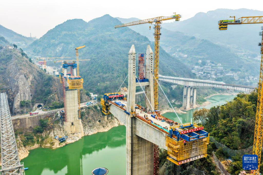 这是2月10日拍摄的西渝高铁嘉陵江特大桥建设现场(无人机照片)。 2月10日,由中铁十一局承建的西渝高铁嘉陵江特大桥首对斜拉索成功安装。春节临近,施工人员抢抓工期,确保重点工程建设进度有序推进。 西渝高铁嘉陵江特大桥是全线控制性工程之一,位于重庆市北碚区,跨越嘉陵江,设计为矮塔斜拉桥。 西渝高铁是我国“八纵八横”高铁网北京至昆明的京昆通道和包头、银川至海口的包(银)海通道的重要组成部分。 新华社记者 唐奕 摄 这是2月10日拍摄的西渝高铁嘉陵江特大桥建设现场(无人机照片)。 2月10日,由中铁十一局承建的西渝高铁嘉陵江特大桥首对斜拉索成功安装。春节临近,施工人员抢抓工期,确保重点工程建设进度有序推进。 西渝高铁嘉陵江特大桥是全线控制性工程之一,位于重庆市北碚区,跨越嘉陵江,设计为矮塔斜拉桥。 西渝高铁是我国“八纵八横”高铁网北京至昆明的京昆通道和包头、银川至海口的包(银)海通道的重要组成部分。 新华社记者 唐奕 摄 2月10日,工人在西渝高铁嘉陵江特大桥建设现场施工作业。 2月10日,由中铁十一局承建的西渝高铁嘉陵江特大桥首对斜拉索成功安装。春节临近,施工人员抢抓工期,确保重点工程建设进度有序推进。 西渝高铁嘉陵江特大桥是全线控制性工程之一,位于重庆市北碚区,跨越嘉陵江,设计为矮塔斜拉桥。 西渝高铁是我国“八纵八横”高铁网北京至昆明的京昆通道和包头、银川至海口的包(银)海通道的重要组成部分。 新华社记者 唐奕 摄 2月10日,工人在西渝高铁嘉陵江特大桥建设现场施工作业。 2月10日,由中铁十一局承建的西渝高铁嘉陵江特大桥首对斜拉索成功安装。春节临近,施工人员抢抓工期,确保重点工程建设进度有序推进。 西渝高铁嘉陵江特大桥是全线控制性工程之一,位于重庆市北碚区,跨越嘉陵江,设计为矮塔斜拉桥。 西渝高铁是我国“八纵八横”高铁网北京至昆明的京昆通道和包头、银川至海口的包(银)海通道的重要组成部分。 新华社记者 唐奕 摄 2月10日,工人在西渝高铁嘉陵江特大桥建设现场施工作业。 2月10日,由中铁十一局承建的西渝高铁嘉陵江特大桥首对斜拉索成功安装。春节临近,施工人员抢抓工期,确保重点工程建设进度有序推进。 西渝高铁嘉陵江特大桥是全线控制性工程之一,位于重庆市北碚区,跨越嘉陵江,设计为矮塔斜拉桥。 西渝高铁是我国“八纵八横”高铁网北京至昆明的京昆通道和包头、银川至海口的包(银)海通道的重要组成部分。 新华社记者 唐奕 摄 2月10日,工人在西渝高铁嘉陵江特大桥建设现场施工作业。 2月10日,由中铁十一局承建的西渝高铁嘉陵江特大桥首对斜拉索成功安装。春节临近,施工人员抢抓工期,确保重点工程建设进度有序推进。 西渝高铁嘉陵江特大桥是全线控制性工程之一,位于重庆市北碚区,跨越嘉陵江,设计为矮塔斜拉桥。 西渝高铁是我国“八纵八横”高铁网北京至昆明的京昆通道和包头、银川至海口的包(银)海通道的重要组成部分。 新华社记者 唐奕 摄