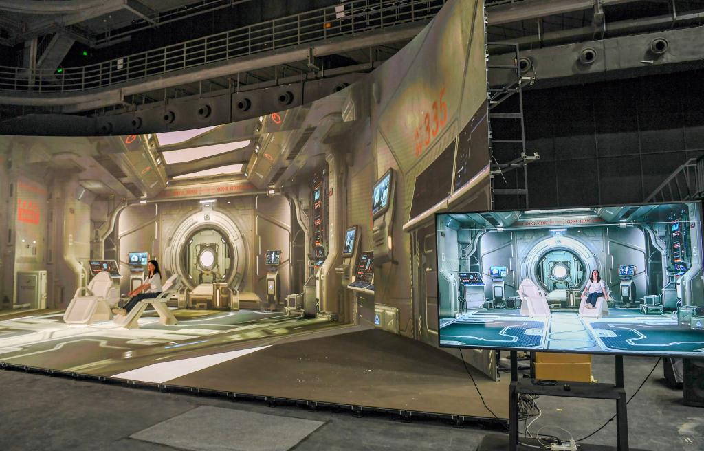 在重庆永川科技片场,观众体验“虚拟拍摄”技术。新华社记者 王全超 摄