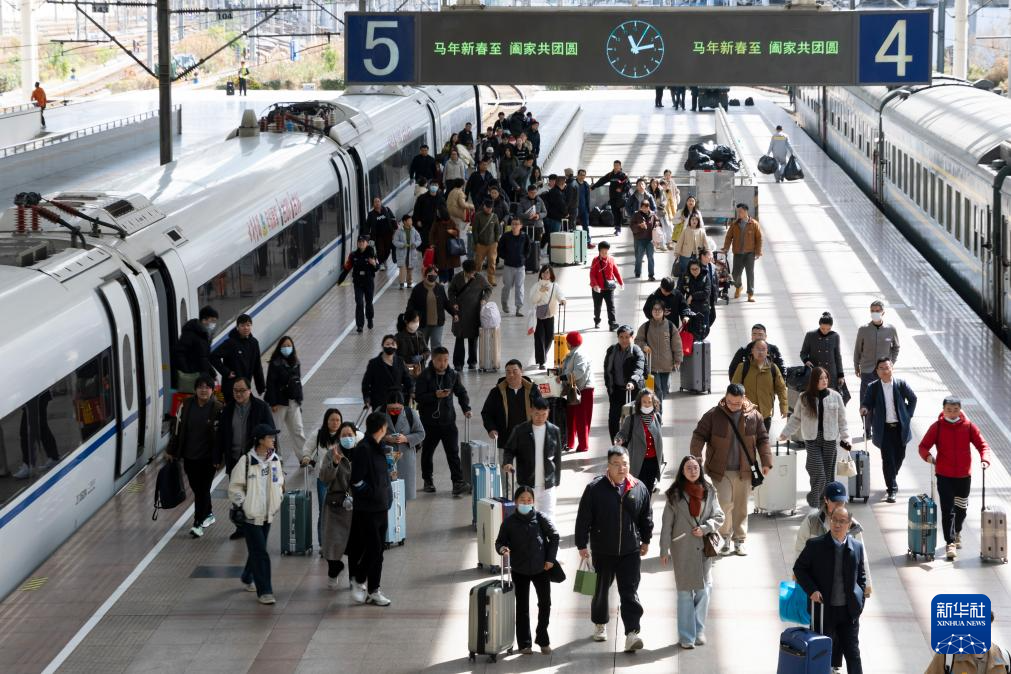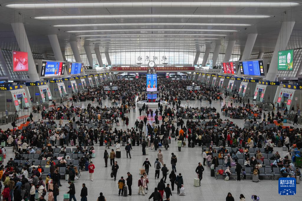 2月23日,旅客在杭州火车东站候车厅候车。 记者从中国国家铁路集团有限公司获悉,2月23日正月初七是春节假期最后一天,全国铁路迎来返程客流最高峰,预计发送旅客1850万人次,计划加开旅客列车2297列。 新华社记者 黄宗治 摄 2月23日,旅客在云南昆明南站准备乘车。 记者从中国国家铁路集团有限公司获悉,2月23日正月初七是春节假期最后一天,全国铁路迎来返程客流最高峰,预计发送旅客1850万人次,计划加开旅客列车2297列。 新华社发(梁志强摄) 2月23日,旅客在湖北省武汉站准备乘车出行。 记者从中国国家铁路集团有限公司获悉,2月23日正月初七是春节假期最后一天,全国铁路迎来返程客流最高峰,预计发送旅客1850万人次,计划加开旅客列车2297列。 新华社发(赵军摄) 2月23日,旅客在沪昆高铁贵州铜仁南站乘车。 记者从中国国家铁路集团有限公司获悉,2月23日正月初七是春节假期最后一天,全国铁路迎来返程客流最高峰,预计发送旅客1850万人次,计划加开旅客列车2297列。 新华社发(胡攀学摄) 2月23日,旅客走在甘肃兰州站站台上。 记者从中国国家铁路集团有限公司获悉,2月23日正月初七是春节假期最后一天,全国铁路迎来返程客流最高峰,预计发送旅客1850万人次,计划加开旅客列车2297列。 新华社发(王光辉摄) 2月23日,旅客在哈尔滨火车站有序出站。 记者从中国国家铁路集团有限公司获悉,2月23日正月初七是春节假期最后一天,全国铁路迎来返程客流最高峰,预计发送旅客1850万人次,计划加开旅客列车2297列。 新华社发(原勇摄) 2月23日,列车在杭州境内行驶(无人机照片)。 记者从中国国家铁路集团有限公司获悉,2月23日正月初七是春节假期最后一天,全国铁路迎来返程客流最高峰,预计发送旅客1850万人次,计划加开旅客列车2297列。 新华社发(龙巍摄) 2月23日,旅客行走在重庆北站候车大厅。 记者从中国国家铁路集团有限公司获悉,2月23日正月初七是春节假期最后一天,全国铁路迎来返程客流最高峰,预计发送旅客1850万人次,计划加开旅客列车2297列。 新华社记者 唐奕 摄 2月23日,旅客在重庆北站候车大厅等待乘车。 记者从中国国家铁路集团有限公司获悉,2月23日正月初七是春节假期最后一天,全国铁路迎来返程客流最高峰,预计发送旅客1850万人次,计划加开旅客列车2297列。 新华社记者 唐奕 摄 2月23日,旅客在重庆北站站台乘车。 记者从中国国家铁路集团有限公司获悉,2月23日正月初七是春节假期最后一天,全国铁路迎来返程客流最高峰,预计发送旅客1850万人次,计划加开旅客列车2297列。 新华社记者 唐奕 摄 2月23日,旅客从天津西站南出站通道出站。 记者从中国国家铁路集团有限公司获悉,2月23日正月初七是春节假期最后一天,全国铁路迎来返程客流最高峰,预计发送旅客1850万人次,计划加开旅客列车2297列。 新华社记者 赵子硕 摄 2月23日拍摄的天津西站候车厅。 记者从中国国家铁路集团有限公司获悉,2月23日正月初七是春节假期最后一天,全国铁路迎来返程客流最高峰,预计发送旅客1850万人次,计划加开旅客列车2297列。 新华社记者 赵子硕 摄 2月23日,一名小旅客和家人在河北石家庄火车站候车大厅候车。 记者从中国国家铁路集团有限公司获悉,2月23日正月初七是春节假期最后一天,全国铁路迎来返程客流最高峰,预计发送旅客1850万人次,计划加开旅客列车2297列。 新华社发(陈其保摄) 2月23日,在北京南站P1停车场网约车等待区,游客有序等待接站车辆。 记者从中国国家铁路集团有限公司获悉,2月23日正月初七是春节假期最后一天,全国铁路迎来返程客流最高峰,预计发送旅客1850万人次,计划加开旅客列车2297列。 新华社发(王跃武摄) 2月23日,旅客在铁路浙江嘉兴南站检票乘车。 记者从中国国家铁路集团有限公司获悉,2月23日正月初七是春节假期最后一天,全国铁路迎来返程客流最高峰,预计发送旅客1850万人次,计划加开旅客列车2297列。 新华社发(金鹏摄) 2月23日,旅客在江苏扬州东站进站乘车。 记者从中国国家铁路集团有限公司获悉,2月23日正月初七是春节假期最后一天,全国铁路迎来返程客流最高峰,预计发送旅客1850万人次,计划加开旅客列车2297列。 新华社发(任飞摄) 2月23日,旅客在江苏泰州站排队检票上车。 记者从中国国家铁路集团有限公司获悉,2月23日正月初七是春节假期最后一天,全国铁路迎来返程客流最高峰,预计发送旅客1850万人次,计划加开旅客列车2297列。 新华社发(汤德宏摄) 2月23日,旅客在河北石家庄火车站候车大厅候车。 记者从中国国家铁路集团有限公司获悉,2月23日正月初七是春节假期最后一天,全国铁路迎来返程客流最高峰,预计发送旅客1850万人次,计划加开旅客列车2297列。 新华社发(陈其保摄) 2月23日,旅客抵达上海火车站后有序出站。 记者从中国国家铁路集团有限公司获悉,2月23日正月初七是春节假期最后一天,全国铁路迎来返程客流最高峰,预计发送旅客1850万人次,计划加开旅客列车2297列。 新华社记者 王翔 摄 2月23日,旅客抵达上海火车站后有序出站。 记者从中国国家铁路集团有限公司获悉,2月23日正月初七是春节假期最后一天,全国铁路迎来返程客流最高峰,预计发送旅客1850万人次,计划加开旅客列车2297列。 新华社记者 王翔 摄 2月23日,旅客在银川火车站排队检票。 记者从中国国家铁路集团有限公司获悉,2月23日正月初七是春节假期最