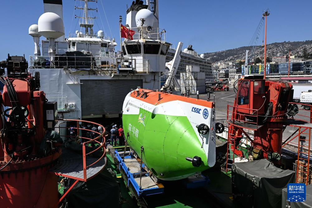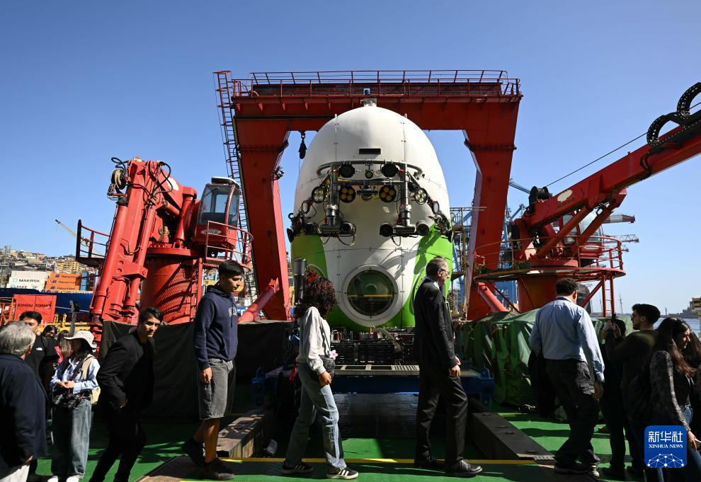 这是3月5日拍摄的停靠于智利瓦尔帕莱索的中国“探索一号”科考船。新华社记者 周佳谊 摄 新华社智利瓦尔帕莱索3月5日电(记者朱雨博周佳谊)在停靠于智利瓦尔帕莱索的中国“探索一号”科考船上,中国-智利阿塔卡马海沟载人深潜联合科考航次5日举行总结仪式。航次顺利完成了包括探索阿塔卡马海沟生物多样性、化能生态系统和板块俯冲机制等在内的多项任务。 本航次由中国科学院深海科学与工程研究所与智利康塞普西翁大学共同组织,历时40余天。其间,“探索一号”搭载的中国自主研发的“奋斗者”号载人潜水器共完成36次下潜,采集生物标本超过3500件,为进一步开展深渊多学科交叉研究打下坚实基础。 3月5日,在停靠于智利瓦尔帕莱索的中国“探索一号”科考船上,人们参观“奋斗者”号载人潜水器。新华社记者 周佳谊 摄 航次中方首席科学家杜梦然告诉记者,此次科考最重要成果之一是首次在南半球观测到最深的冷泉生态系统,为中国科学家提出的“全球化能合成生命走廊”假说提供了又一有力证据。研究人员还首次在同一海沟中发现至少3种不同物种的深渊狮子鱼,反映出该区域较高的鱼类生物多样性。 冷泉生态系统是指生物利用海底冷泉渗出的化学物质为能源进行化能合成,发育成海底黑暗世界里独特的生态系统,该系统通过化能合成而生生不息。“全球化能合成生命走廊”假说认为,在全球海沟底部广泛发育着此类系统。 3月5日,在停靠于智利瓦尔帕莱索的中国“探索一号”科考船上,人们参观“奋斗者”号载人潜水器。新华社发(豪尔赫·比列加斯摄) 研究人员还发现了与智利历史上重大地震相关的海底断层破裂结构。这为理解地震活动如何塑造深海地貌以及如何影响生物栖息环境提供了罕见的原位观测证据。 本航次也是由中国主导的国际大科学计划“全球深渊探索计划”框架下的国际联合航次。航次领队、“全球深渊探索计划”负责人彭晓彤认为,本航次对于进一步推进东太平洋及南大洋海沟系统科学研究具有重要意义。 这是3月5日在停靠于智利瓦尔帕莱索的中国“探索一号”科考船上拍摄的“奋斗者”号载人潜水器。新华社发(豪尔赫·比列加斯摄) 智利地球物理学家巴莱里娅·科尔特斯在本航次中成为世界首位下潜至阿塔卡马海沟的女性科学家。她表示,借助中国载人潜水器,她得以深入阿塔卡马海沟采集样本,以全新视角研究深海。 中国驻智利大使牛清报在仪式上说,期待中智双方在此次科考积累的深厚情谊与宝贵经验基础上,进一步加强在海洋观测、生态保护、蓝色经济等更广阔领域的交流互鉴。 这是3月5日在停靠于智利瓦尔帕莱索的中国“探索一号”科考船上拍摄的“奋斗者”号载人潜水器。新华社记者 周佳谊 摄 3月5日,在停靠于智利瓦尔帕莱索的中国“探索一号”科考船上,一名参观者拍摄“奋斗者”号载人潜水器。新华社发(豪尔赫·比列加斯摄) 这是3月5日拍摄的停靠于智利瓦尔帕莱索的中国“探索一号”科考船(无人机照片)。新华社发(维克托·加拉特摄) 3月5日,在停靠于智利瓦尔帕莱索的中国“探索一号”科考船上,航次中方首席科学家杜梦然(左一)介绍科考情况。新华社记者 周佳谊 摄