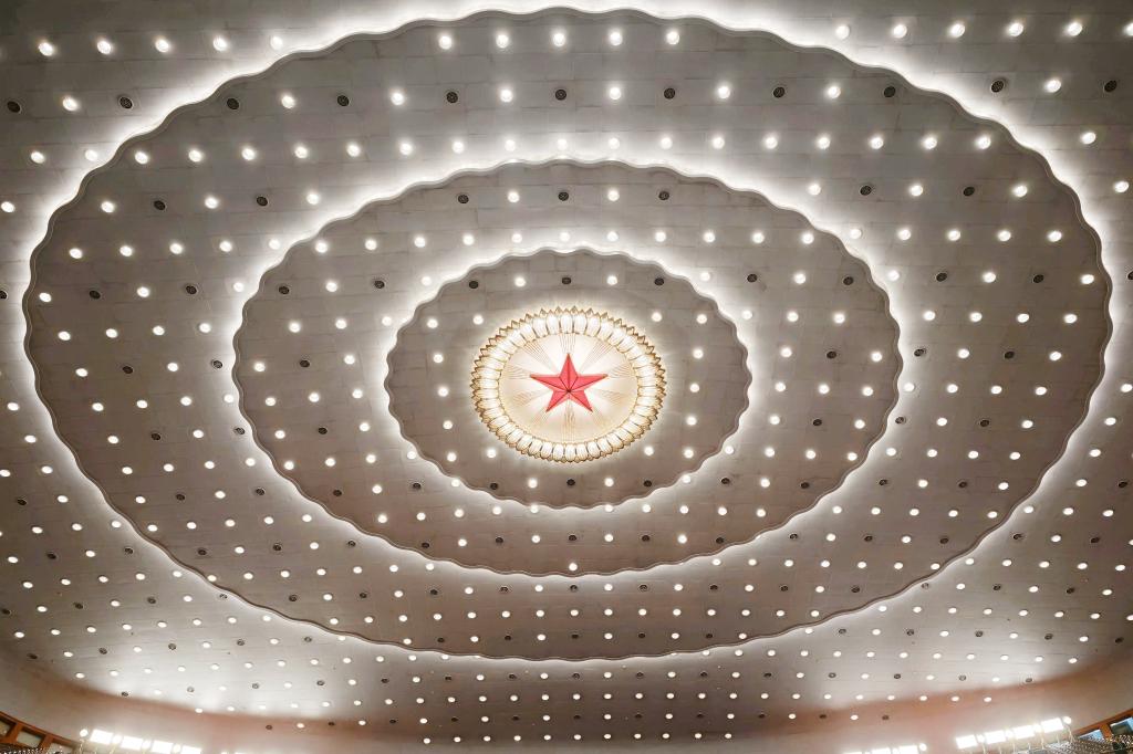 3月9日,十四届全国人大四次会议在北京人民大会堂举行第二次全体会议。这是人民大会堂内景。
