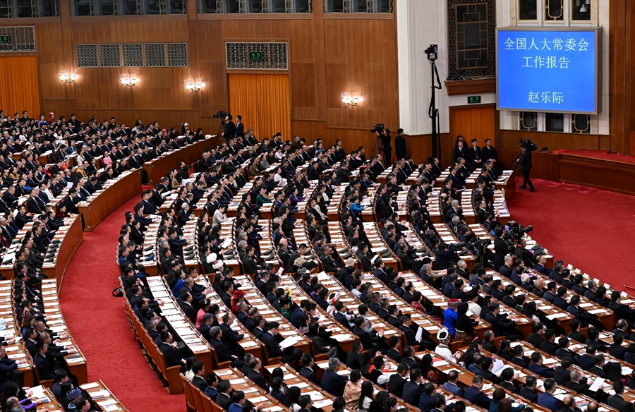 3月9日,十四届全国人大四次会议在北京人民大会堂举行第二次全体会议。