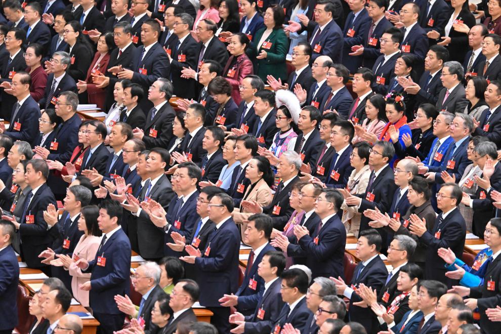 3月9日,十四届全国人大四次会议在北京人民大会堂举行第二次全体会议。这是全国政协委员列席会议。