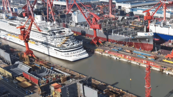 大型邮轮以其“巨系统”工程的复杂集成和精益工艺被称为造船工业“皇冠上的明珠”,而第二艘国产大邮轮“爱达·花城号”比第一艘的国产化配套率大约提升了5%。