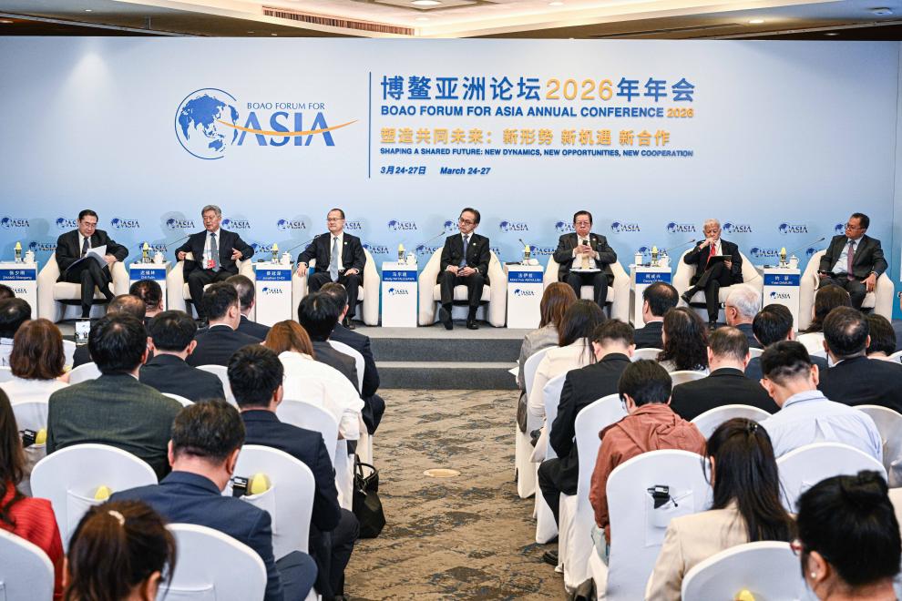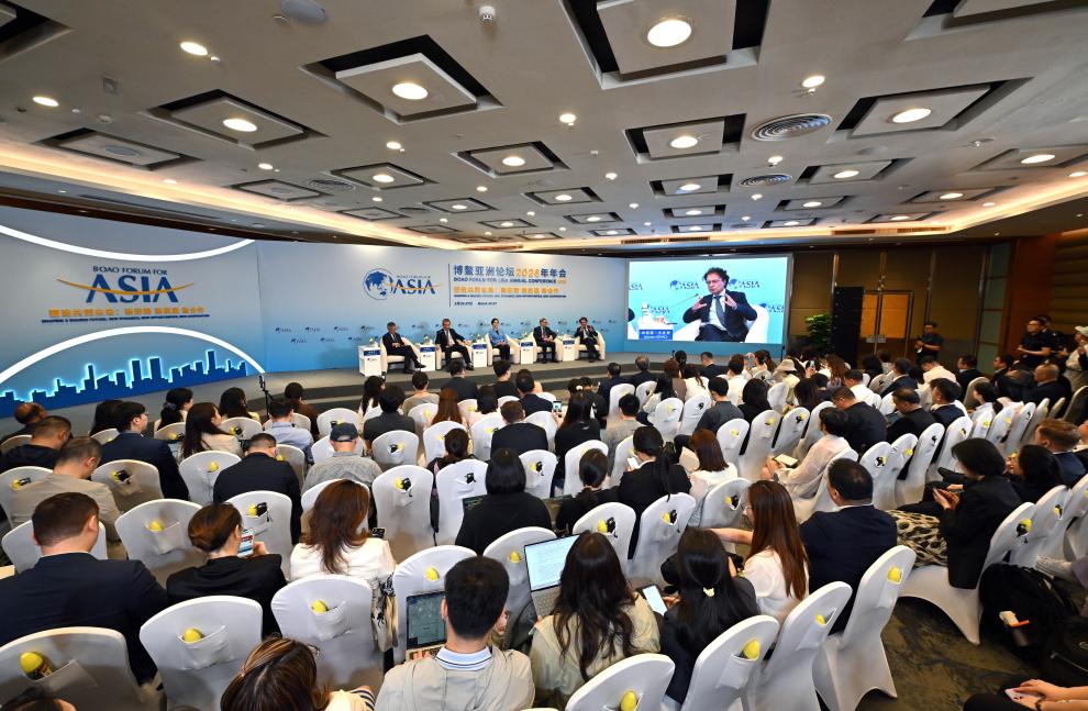 春风拂面,椰林葱郁 琼州大地上,博鳌亚洲论坛2026年年会热潮涌动 60多个国家和地区约2000名代表汇聚一堂 以“塑造共同未来:新形势、新机遇、新合作”为主题 分享真知灼见,求解发展之困 博鳌亚洲论坛2026年年会3月24日至3月27日在海南博鳌东屿岛举行,这是博鳌亚洲论坛国际会议中心(无人机照片)。新华社记者 杨冠宇 摄 国际形势呈现出前所未有的复杂性与严峻性 变局与挑战不断激发着和衷共济的共识与自觉 看博鳌如何深化共识 在同舟共济中筑牢信任基石 “世界越波动,亚洲就越需要团结” “我们要增进信任,增加世界的相互依存度” “加强跨境基础设施建设等‘硬支撑’” “深化规则、制度等‘软联通’” “开放”始终是与会人士口中的“高频词” 《可持续发展的亚洲与世界2026年度报告》 重申以共同发展为导向的合作理念—— “以亚洲共同体为目标,坚持真正的多边主义” 看博鳌如何共享机遇 中国发展为世界注入生机活力 当不确定性成为全球经济运行的突出特征 稳定的预期就是更宝贵的资源 始终扮演亚洲产业链的“稳定锚”角色 进口规模约占全球10%份额 中国大市场、完整的产业体系 中国经济的韧性给世界带来信心 3月24日,博鳌亚洲论坛2026年年会举行“中国经济展望:聚焦高质量发展”分论坛。新华社记者 郭程 摄 中国重点培育壮大新兴产业和未来产业 不断积蓄未来发展的新动能 中国经济的“新”意 为世界创造广阔发展空间 “提升贸易投资合作质量和水平” “全方位推进数智技术赋能” “健全海外综合服务体系” “十五五”规划纲要 这份中国未来五年发展的蓝图 被视为与各国推进共同现代化的“邀约” 看博鳌如何共塑未来 在携手同行中开创美好前景 开放包容,相通则共进 携手同心,共进方共赢 3月25日,博鳌亚洲论坛2026年年会举行“RCEP:如何释放更大潜力?”分论坛。新华社记者 蒲晓旭 摄 年会发出最强音: 将共识转化为扎扎实实的行动 共同维护更稳固、更持久的安全 ………… 博鳌之声激荡,合作之帆正扬! 策划:陈良杰、张晓松 记者:新华社记者 视觉:杨冠宇、郭程、蒲晓旭 统筹:任硌、杜宇