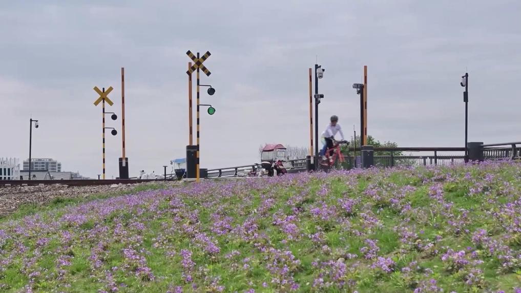 春风拂岸,在位于浙江省杭州市余杭区的西险大塘坝坡上,盛放的二月兰成了一片紫色的花海,为市民散步、跑步、骑行更添几分美好。