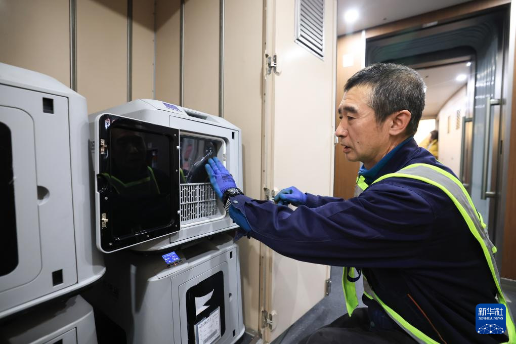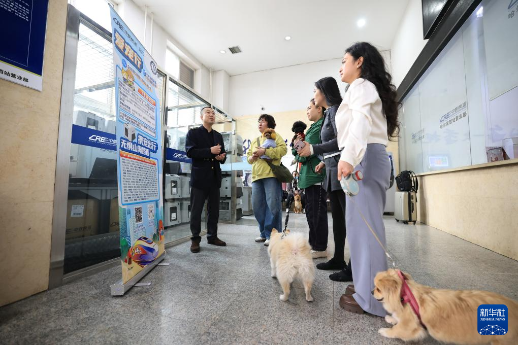 4月19日,在中铁快运哈尔滨西站营业部,旅客与即将进入“智能座舱”运输箱的宠物狗合影。 近期,铁路部门正式推出“爱宠行”高铁宠物托运服务,覆盖全国121座高铁车站、228趟列车。中国铁路哈尔滨局集团有限公司同步在哈尔滨、哈尔滨西、牡丹江三站开启服务,助力旅客“带宠出游”。中铁快运升级打造“智能座舱”运输箱,严格执行“隔离运输、人宠分开”,保障旅途安全舒适。 新华社发(徐率摄) 4月19日,旅客在中铁快运哈尔滨西站营业部为即将进入“智能座舱”运输箱的宠物狗穿衣服。 新华社发(徐率摄) 4月19日,旅客走进中铁快运哈尔滨西站营业部办理“爱宠行”托运服务。 新华社发(徐率摄) 4月19日,旅客在中铁快运哈尔滨西站营业部与即将进入“智能座舱”运输箱内的宠物狗互动。 新华社发(徐率摄) 4月19日,在中铁快运哈尔滨西站营业部,旅客在与进入“智能座舱”运输箱的宠物狗告别。 新华社发(徐率摄) 4月19日,在哈尔滨西站,中铁快运哈尔滨西站营业部工作人员准备将“智能座舱”运输箱搬运到哈尔滨西开往北京朝阳的G118次列车车厢内。 新华社发(徐率摄) 4月19日,旅客在中铁快运哈尔滨西站营业部与即将进入“智能座舱”运输箱内的宠物狗合影。 新华社发(徐率摄) 4月19日,在哈尔滨西站,中铁快运哈尔滨西站营业部工作人员将“智能座舱”运输箱运送到哈尔滨西开往北京朝阳的G118次列车上。 新华社发(徐率摄) 4月19日,中铁快运哈尔滨西站营业部工作人员(左一)为旅客讲解“爱宠行”高铁宠物托运服务注意事项。 新华社发(徐率摄) 4月19日,中铁快运哈尔滨西站营业部工作人员在G118次列车的车厢内检查“智能座舱”运输箱。 新华社发(徐率摄) 4月19日,中铁快运哈尔滨西站营业部工作人员在检查“智能座舱”运输箱。 新华社发(徐率摄) 4月19日,中铁快运哈尔滨西站营业部工作人员在检查“智能座舱”运输箱。 新华社发(徐率摄) 4月19日,旅客的宠物狗在中铁快运哈尔滨西站营业部准备进入“智能座舱”运输箱。 新华社发(徐率摄) 4月19日,在中铁快运哈尔滨西站营业部,旅客(右)在工作人员帮助下将宠物狗送入“智能座舱”运输箱。 新华社发(徐率摄)