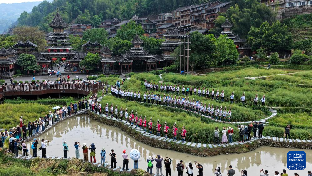 4月18日拍摄的肇兴侗寨夜景(无人机照片)。 贵州省黎平县肇兴侗寨藏于黔东南青山绿水间,作为中国最大的侗族村寨之一,这里鼓楼林立,风雨桥静卧溪上,侗族大歌婉转悠扬,非遗技艺薪火相传。 昔日,肇兴侗寨因交通闭塞、产业单一,村民多外出务工,经济落后。近年来,肇兴侗寨依托独特民族文化与生态资源,大力发展文旅产业,成功创建国家4A级景区,独特的侗族大歌表演、非遗技艺体验、特色民宿餐饮等吸引了八方游客。2025年,肇兴侗寨接待游客超151万人次,旅游综合收入破15亿元,村集体经济收入超300万元。如今,越来越多外出村民返乡吃上 “旅游饭”。千年侗寨以文旅为桥,让民族文化活起来、村民腰包鼓起来,走出一条乡村振兴的共富之路。 新华社发(龙建睿摄) 4月18日,在贵州省黎平县肇兴侗寨内参与谷雨节“打花脸”活动的游客在合影留念。 贵州省黎平县肇兴侗寨藏于黔东南青山绿水间,作为中国最大的侗族村寨之一,这里鼓楼林立,风雨桥静卧溪上,侗族大歌婉转悠扬,非遗技艺薪火相传。 昔日,肇兴侗寨因交通闭塞、产业单一,村民多外出务工,经济落后。近年来,肇兴侗寨依托独特民族文化与生态资源,大力发展文旅产业,成功创建国家4A级景区,独特的侗族大歌表演、非遗技艺体验、特色民宿餐饮等吸引了八方游客。2025年,肇兴侗寨接待游客超151万人次,旅游综合收入破15亿元,村集体经济收入超300万元。如今,越来越多外出村民返乡吃上 “旅游饭”。千年侗寨以文旅为桥,让民族文化活起来、村民腰包鼓起来,走出一条乡村振兴的共富之路。 新华社发(龙建睿摄) 4月19日,歌手在肇兴侗寨鼓楼下为游客演唱侗族大歌。 贵州省黎平县肇兴侗寨藏于黔东南青山绿水间,作为中国最大的侗族村寨之一,这里鼓楼林立,风雨桥静卧溪上,侗族大歌婉转悠扬,非遗技艺薪火相传。 昔日,肇兴侗寨因交通闭塞、产业单一,村民多外出务工,经济落后。近年来,肇兴侗寨依托独特民族文化与生态资源,大力发展文旅产业,成功创建国家4A级景区,独特的侗族大歌表演、非遗技艺体验、特色民宿餐饮等吸引了八方游客。2025年,肇兴侗寨接待游客超151万人次,旅游综合收入破15亿元,村集体经济收入超300万元。如今,越来越多外出村民返乡吃上 “旅游饭”。千年侗寨以文旅为桥,让民族文化活起来、村民腰包鼓起来,走出一条乡村振兴的共富之路。 新华社发(龙建睿摄) 4月19日,外国游客在肇兴侗寨游览。 贵州省黎平县肇兴侗寨藏于黔东南青山绿水间,作为中国最大的侗族村寨之一,这里鼓楼林立,风雨桥静卧溪上,侗族大歌婉转悠扬,非遗技艺薪火相传。 昔日,肇兴侗寨因交通闭塞、产业单一,村民多外出务工,经济落后。近年来,肇兴侗寨依托独特民族文化与生态资源,大力发展文旅产业,成功创建国家4A级景区,独特的侗族大歌表演、非遗技艺体验、特色民宿餐饮等吸引了八方游客。2025年,肇兴侗寨接待游客超151万人次,旅游综合收入破15亿元,村集体经济收入超300万元。如今,越来越多外出村民返乡吃上 “旅游饭”。千年侗寨以文旅为桥,让民族文化活起来、村民腰包鼓起来,走出一条乡村振兴的共富之路。 新华社发(龙建睿摄) 4月20日拍摄的肇兴侗寨雨后风光(无人机照片)。 贵州省黎平县肇兴侗寨藏于黔东南青山绿水间,作为中国最大的侗族村寨之一,这里鼓楼林立,风雨桥静卧溪上,侗族大歌婉转悠扬,非遗技艺薪火相传。 昔日,肇兴侗寨因交通闭塞、产业单一,村民多外出务工,经济落后。近年来,肇兴侗寨依托独特民族文化与生态资源,大力发展文旅产业,成功创建国家4A级景区,独特的侗族大歌表演、非遗技艺体验、特色民宿餐饮等吸引了八方游客。2025年,肇兴侗寨接待游客超151万人次,旅游综合收入破15亿元,村集体经济收入超300万元。如今,越来越多外出村民返乡吃上 “旅游饭”。千年侗寨以文旅为桥,让民族文化活起来、村民腰包鼓起来,走出一条乡村振兴的共富之路。 新华社发(吴光辉摄) 4月18日,游人在肇兴侗寨观赏“鱼灯巡游”活动。 贵州省黎平县肇兴侗寨藏于黔东南青山绿水间,作为中国最大的侗族村寨之一,这里鼓楼林立,风雨桥静卧溪上,侗族大歌婉转悠扬,非遗技艺薪火相传。 昔日,肇兴侗寨因交通闭塞、产业单一,村民多外出务工,经济落后。近年来,肇兴侗寨依托独特民族文化与生态资源,大力发展文旅产业,成功创建国家4A级景区,独特的侗族大歌表演、非遗技艺体验、特色民宿餐饮等吸引了八方游客。2025年,肇兴侗寨接待游客超151万人次,旅游综合收入破15亿元,村集体经济收入超300万元。如今,越来越多外出村民返乡吃上 “旅游饭”。千年侗寨以文旅为桥,让民族文化活起来、村民腰包鼓起来,走出一条乡村振兴的共富之路。 新华社发(吴光辉摄) 4月18日,游客在肇兴侗寨选购文创工艺品。 贵州省黎平县肇兴侗寨藏于黔东南青山绿水间,作为中国最大的侗族村寨之一,这里鼓楼林立,风雨桥静卧溪上,侗族大歌婉转悠扬,非遗技艺薪火相传。 昔日,肇兴侗寨因交通闭塞、产业单一,村民多外出务工,经济落后。近年来,肇兴侗寨依托独特民族文化与生态资源,大力发展文旅产业,成功创建国家4A级景区,独特的侗族大歌表演、非遗技艺体验、特色民宿餐饮等吸引了八方游客。2025年,肇兴侗寨接待游客超151万人次,旅游综合收入破15亿元,村集体经济收入超300万元。如今,越来