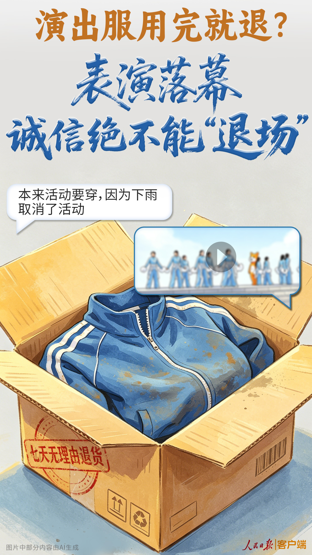 孩子前脚穿着这套服装在校园舞台上展现风采,后脚就看到父母编造理由将服装退回,他们是否会认为:规则可以被利用,谎言可以瞒天过海,只要不被发现,投机取巧就无可厚非?这种潜移默化的“言传身教”,对孩子价值观的负面影响,更值得深思警醒。